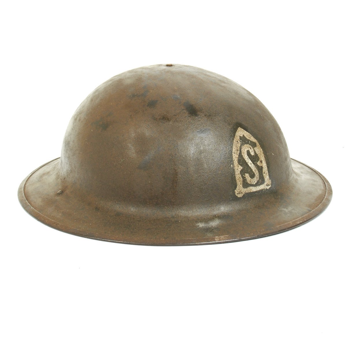 Original Item: Only One Available. This fine extremely RARE example offered without liner but with chinstrap has wonderful original period green/brown paint. The shell is maker marked with a stamping on the underside of the rim that reads ZD 75. This is an wonderful example of a genuine USGI Great War helmet from a well known infantry regiment of the US army. The best feature of all is the original hand painted insignia of the American Expeditionary Force Siberia 31st Infantry Regiment known as the "Polar Bears"!