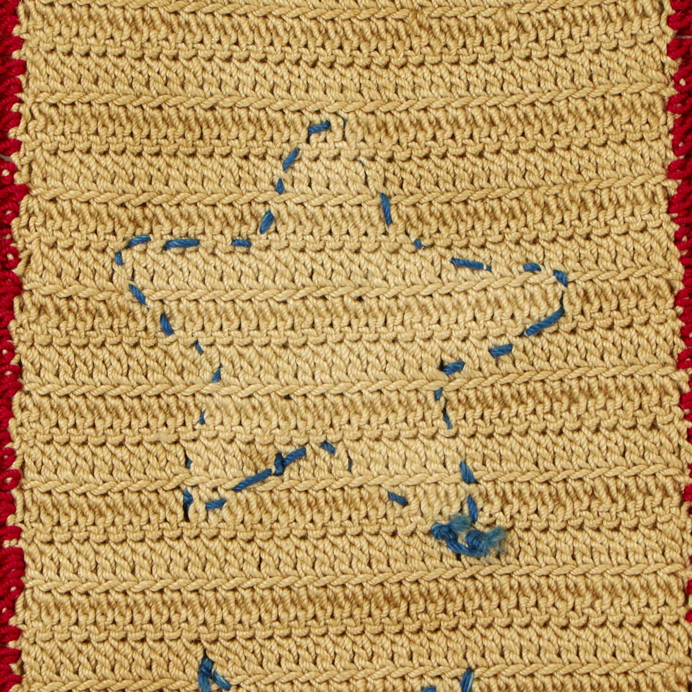 Here we have a nice set of two flags, which shows a bit of the variety seen with "Blue Star" Service Banners during WWI. The first example has two stars and is entirely woven, most likely by machine. It has some markings on the top hanging rod, so it definitely looks to be a commercially available example, and measures about 7 1/2"W X 11 1/2". The front side definitely shows some fading, and the loops that once held it to the top post are now mostly broken off.