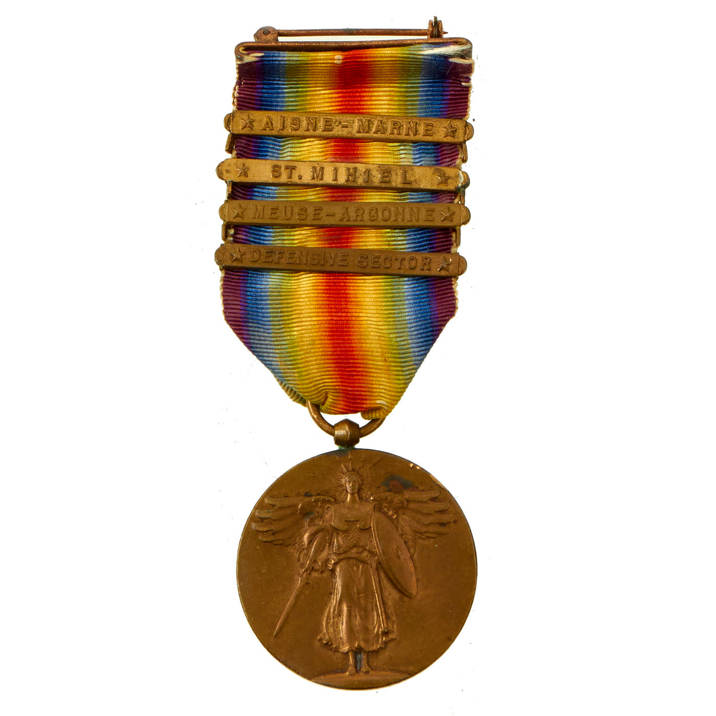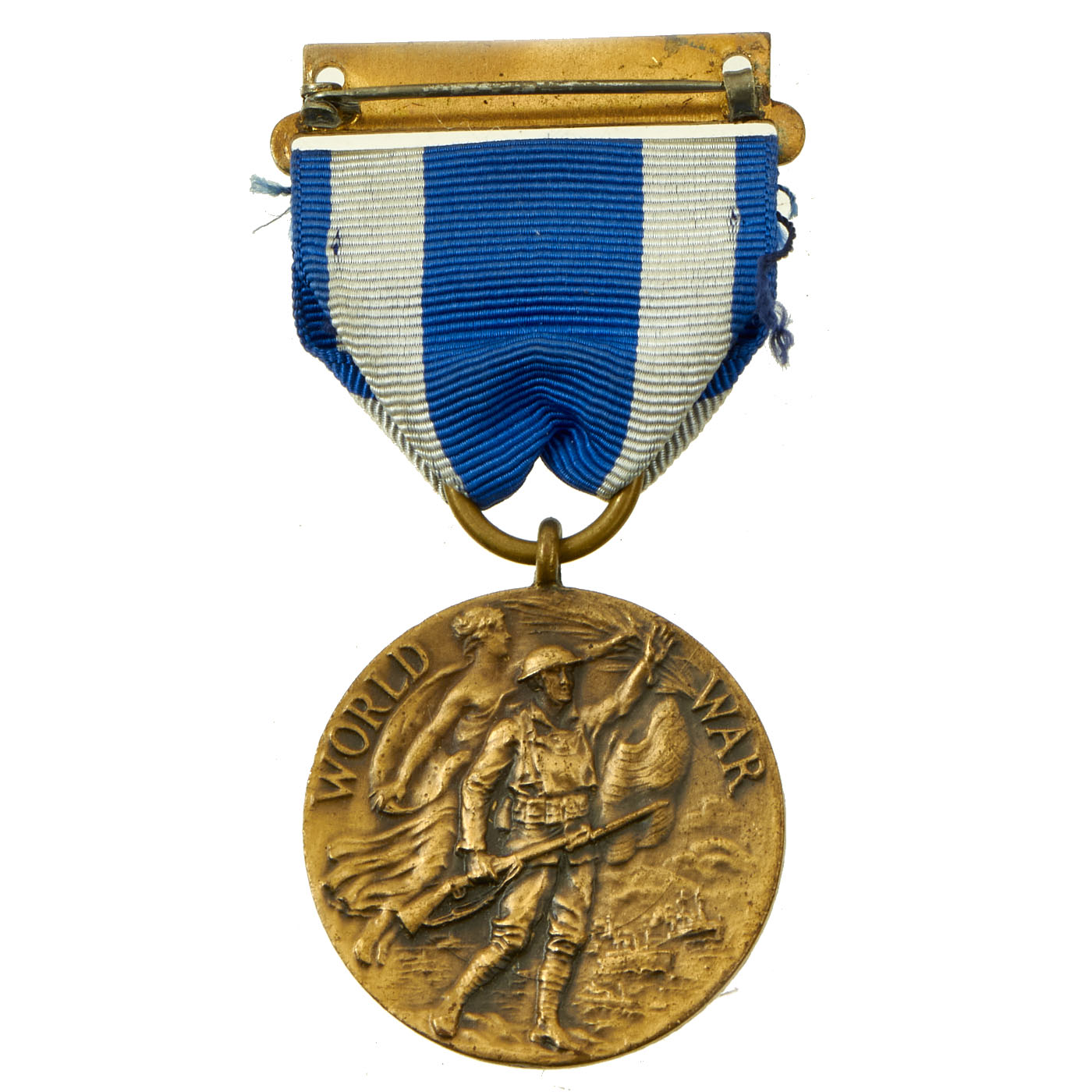 - U.S. World War One Victory Medal: The World War I Victory Medal (known prior to establishment of the World War II Victory Medal in 1945 simply as the Victory Medal) was a United States service medal designed by Mr. J. E. Fraser of New York City under the direction of the Commission of Fine Arts.