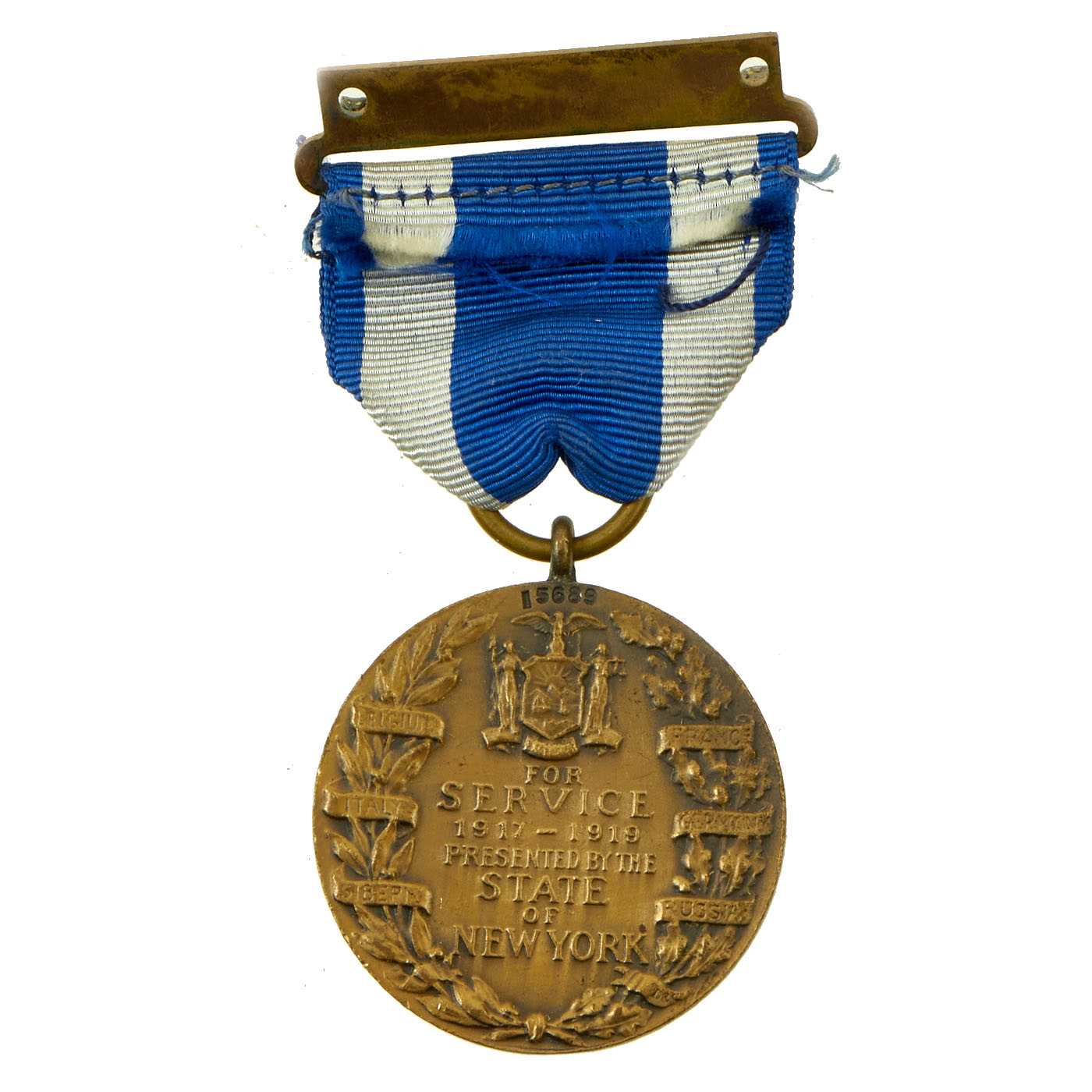 - Numbered New York World War 1 Service Medal (15689): The World War I Service Medal issued by New York State in the United States is a World War I service medal designed by Captain Charles Joseph Dieges after being selected from over 100 submitted designs. His firm, Dieges & Clust, also manufactured the medals. Over 500,000 New Yorkers served in World War I and were eligible for this medal.