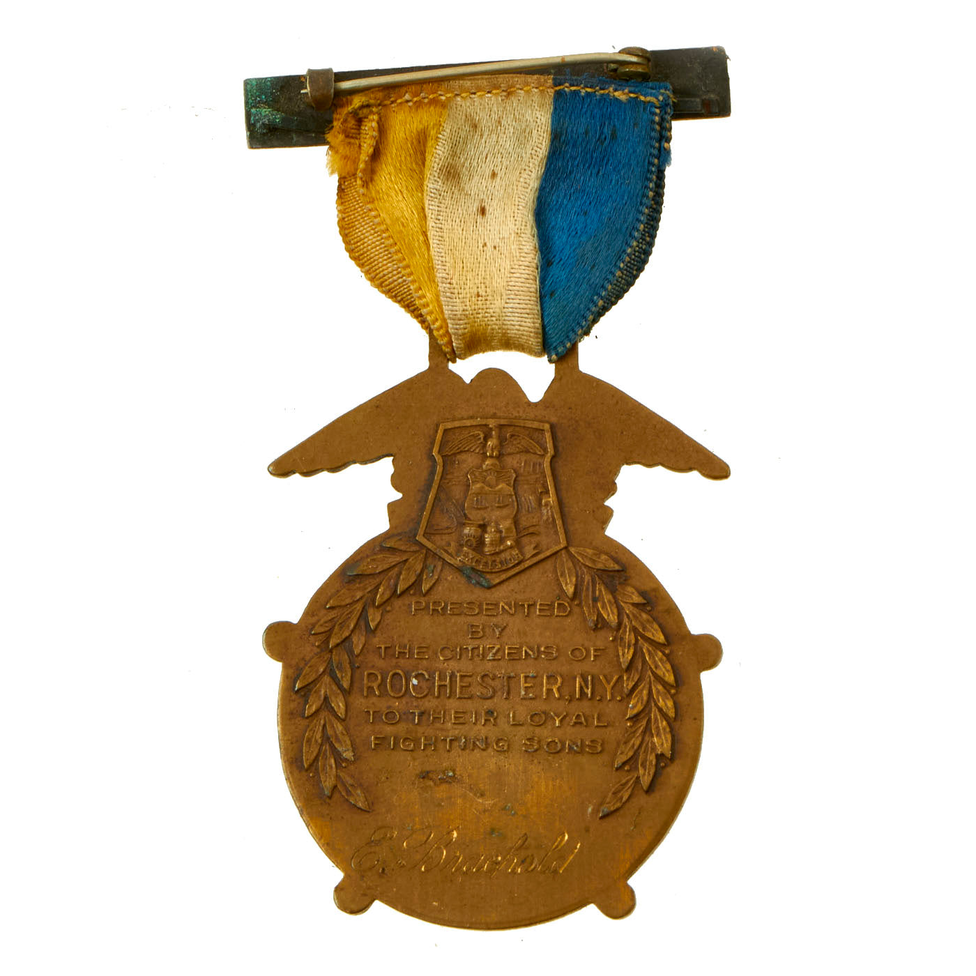 This local medal was “Presented By The Citizens of Rochester, N.Y. To Their Loyal Fighting Sons”