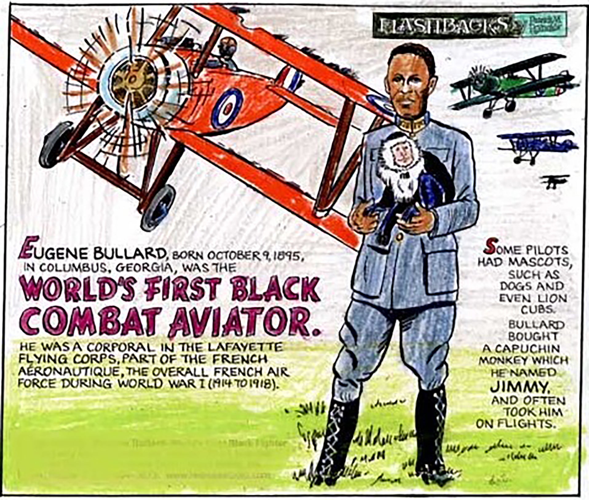Eugene Bullard was born on October 9th, 1895, in Columbus, Georgia. During his youth, he suffered the trauma of watching a white mob attempt to lynch his father over a workplace dispute. Despite the rampant racism of Jim Crow-era Georgia, his father continued to voice the conviction that African-Americans had to maintain their dignity and self-respect in the face of the white prejudice. Despite this, Bullard became enamored with his father's stories of France where slavery had been abolished and blacks were treated the same as whites. When he reached his 11th birthday, Bullard ran away from home with the intent of getting to France. Stopping in Atlanta, he joined a British clan of gypsies known by the surname of Stanley and traveled throughout Georgia tending their horses and learning to race. It was the Stanleys who told him how the racial barriers did not exist in Britain and reset his determination to now get to the United Kingdom.