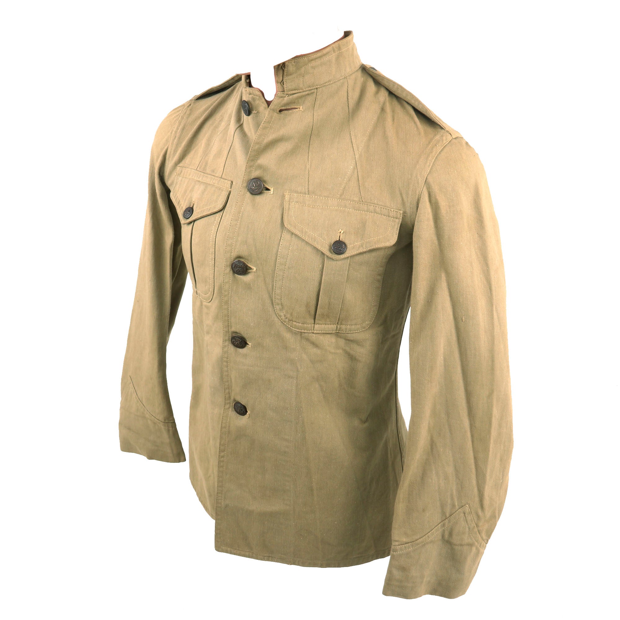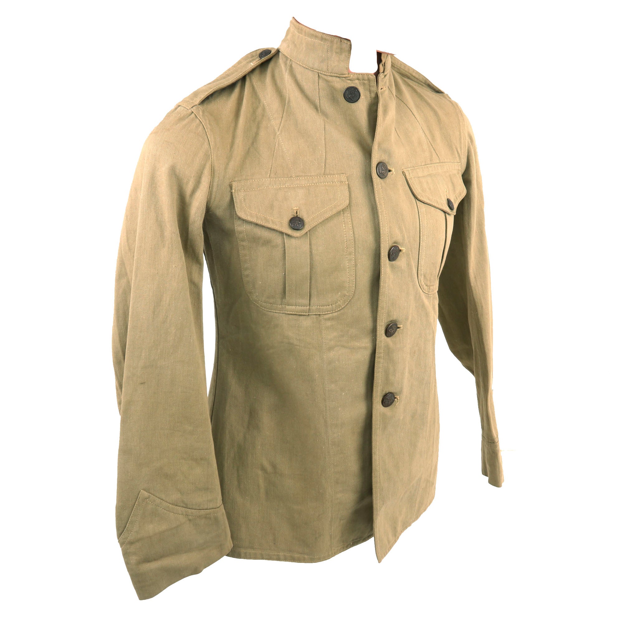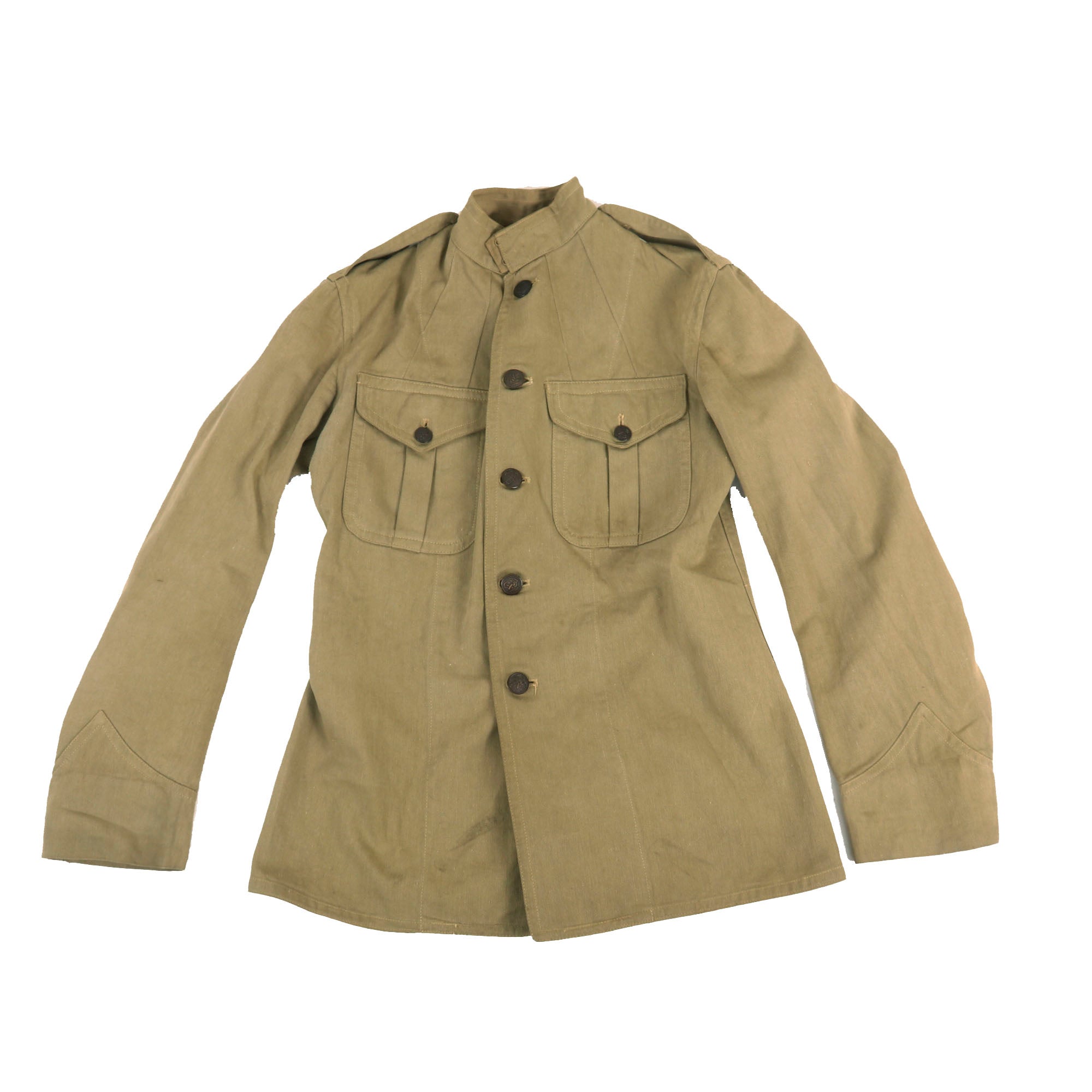 Original Item. Only One Available. This is a great example of a Pattern 1912 Summer Khaki Tunic as used by United States Marines during the Banana Wars and the years leading up to World War 1. This model differs from the later model as it only has a top row of front pockets.