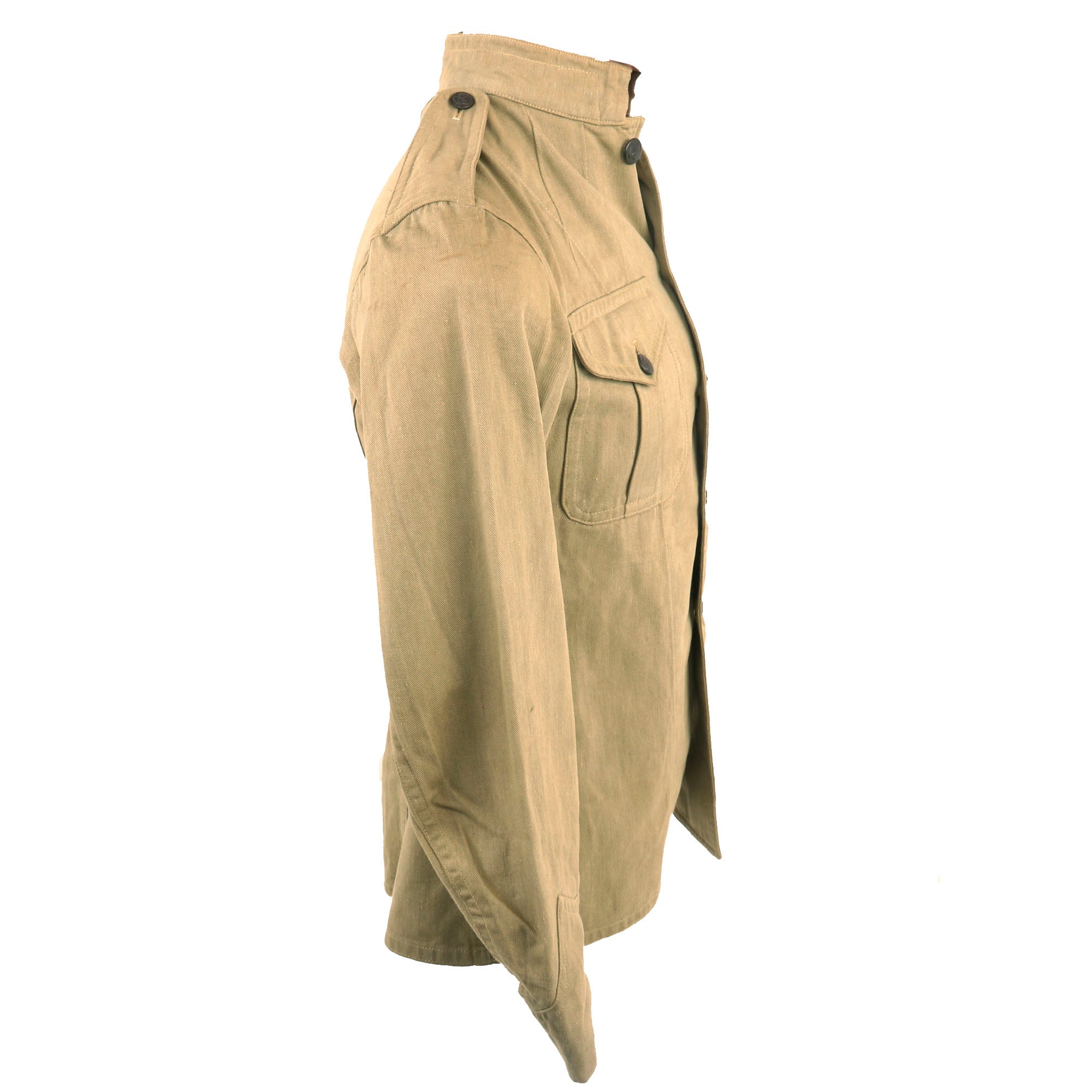 The tunic is completely free of damage and still retains all buttons and clasps with original black finish. There don’t appear to be any stamps, but it appears there may be a very faint name stamped onto the collar, making for a great research project.