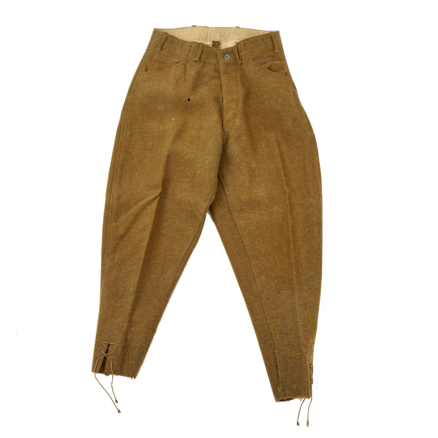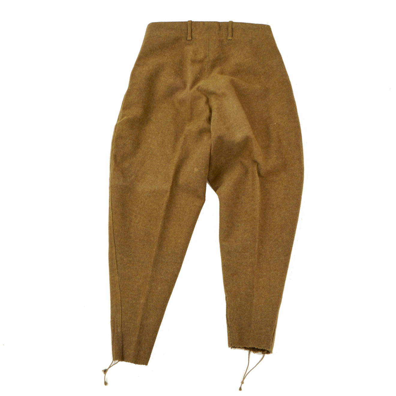 The trousers are a beautiful pair in similar condition to the tunic. They are without damage and still retain the drawstring down on the calf location of the jodphurs. Also included in this set is the ever so attractive green wool overseas cap.
