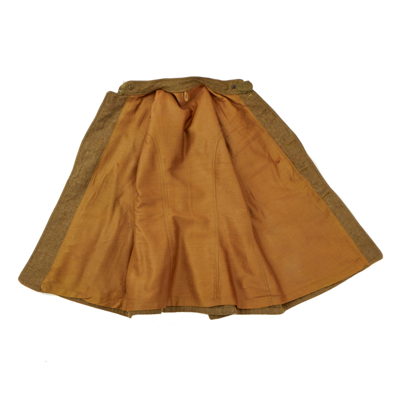 This set includes a beautiful 86th Infantry Division patched tunic with Medical collar discs featured on the cuff style collar. The tunic is completed with all buttons and snaps and is in great condition with very minor moth nips. The 86th division “Blackhawk” shoulder patch was hand sewn onto the left shoulder and is in beautiful condition with most of the black thread retained. The chevrons on the left sleeve are also retained very nicely and are in beautiful condition. The lining of the jacket is without damage but it does show very minor staining.