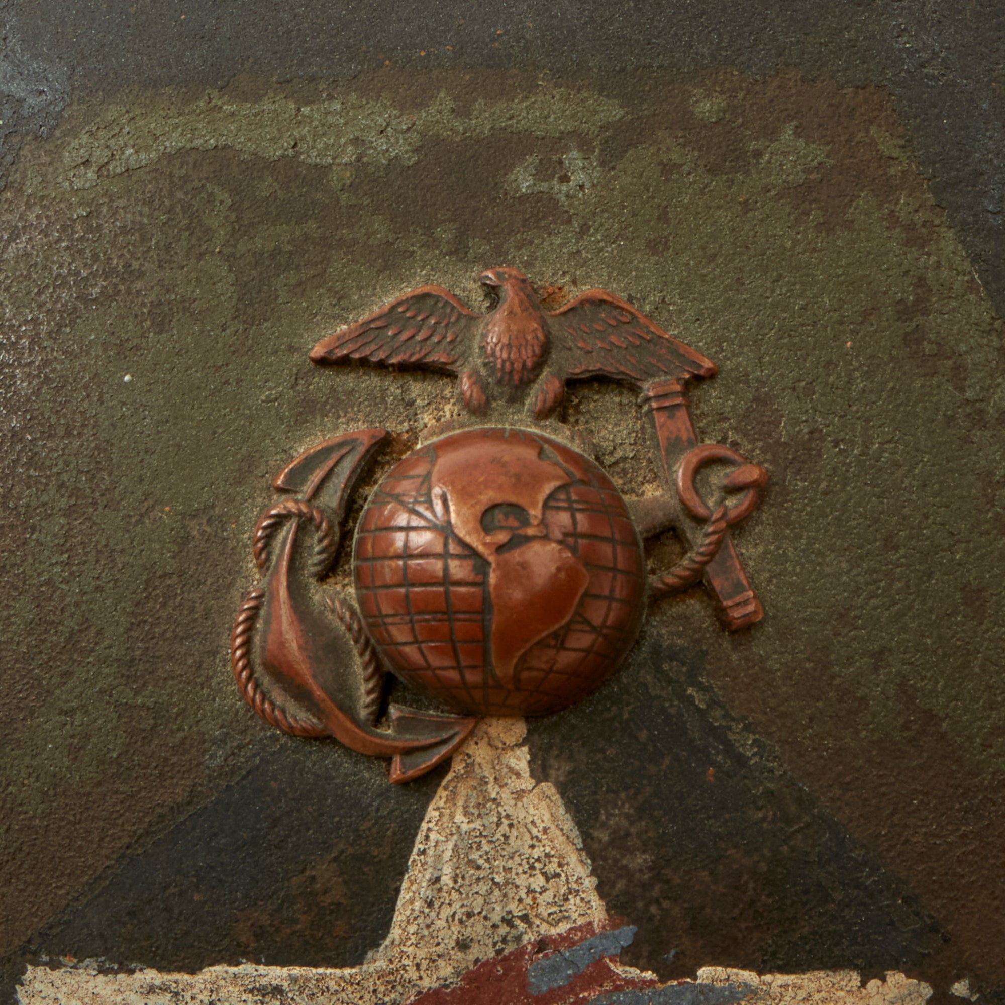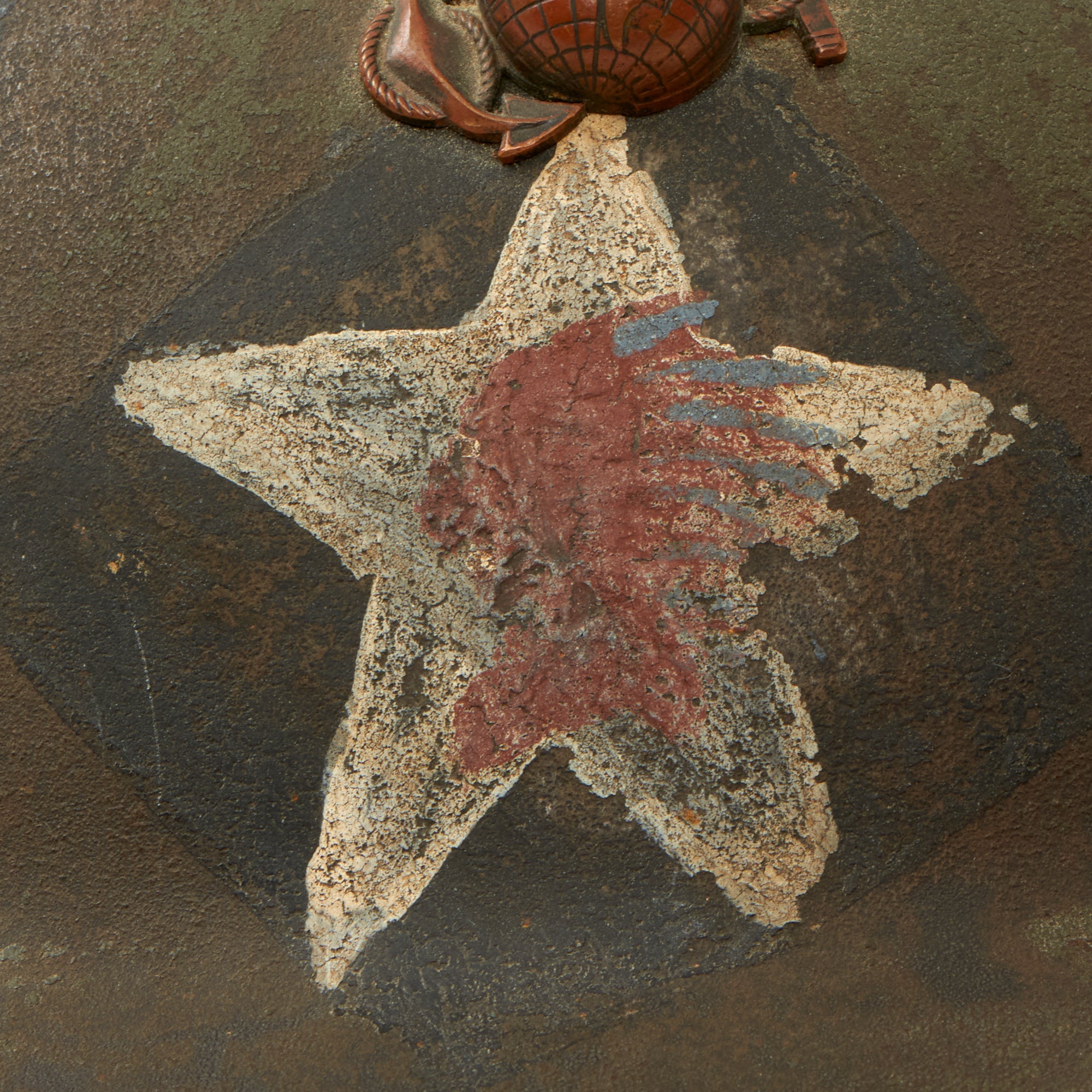 This is a wonderful RARE example of a genuine USMC Great War helmet, complete with divisional insignia, all original and ready to display! This is one of the first camouflage painted 2nd Division helmets we have offered, and this one is just outstanding.