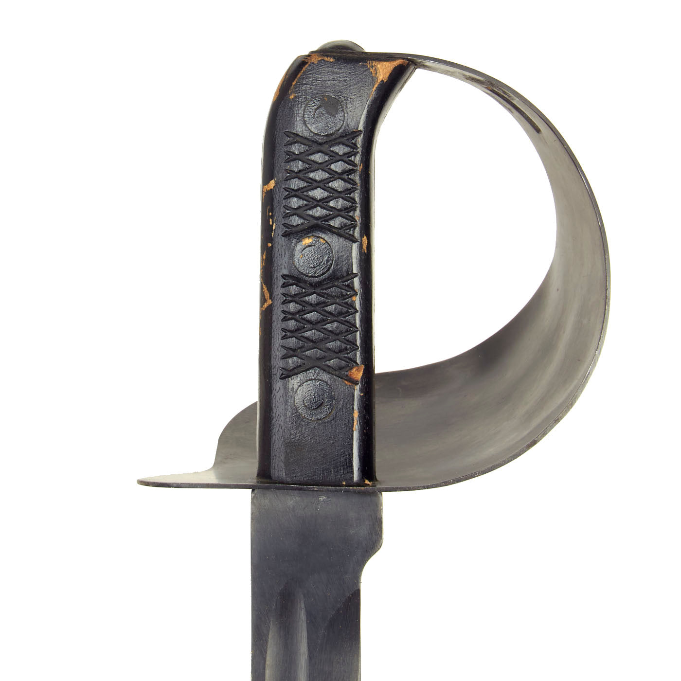 Once the basic design decision was made, the Navy added a few enhancements such as the japanned steel hilt with a full half basket cup like its predecessor the M1850, (as opposed to the Klewang's open half cup or the M1860's brass cup), and an all wood squarish cross-hatched grip. But apart from that there is little essential distinctive difference between the US Navy's new M1917 and the Dutch Klewang M1911