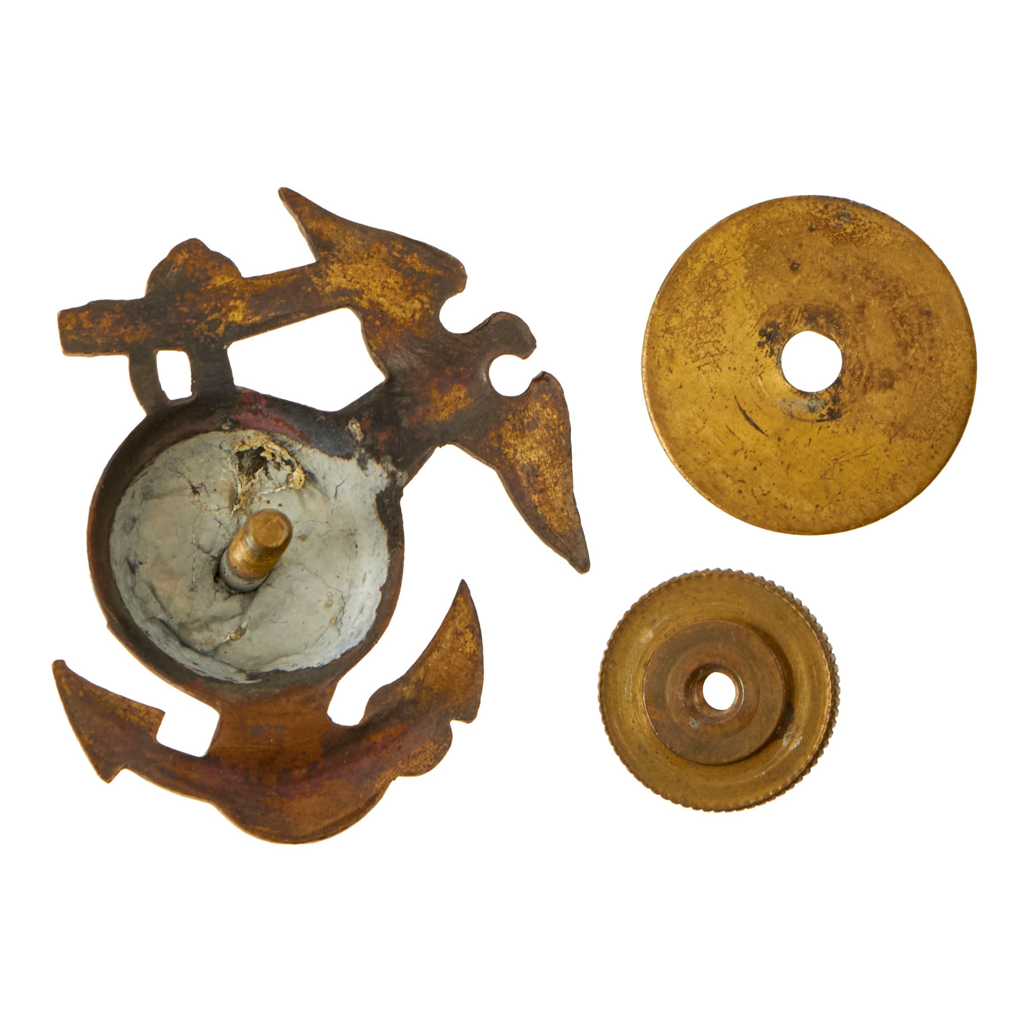 The device comes with its original fastener and its original washer. The washer would help keep the EGA affixed properly without rotating. Some examples had a pin behind the eagle to help this, but this example does not show signs of ever having one.