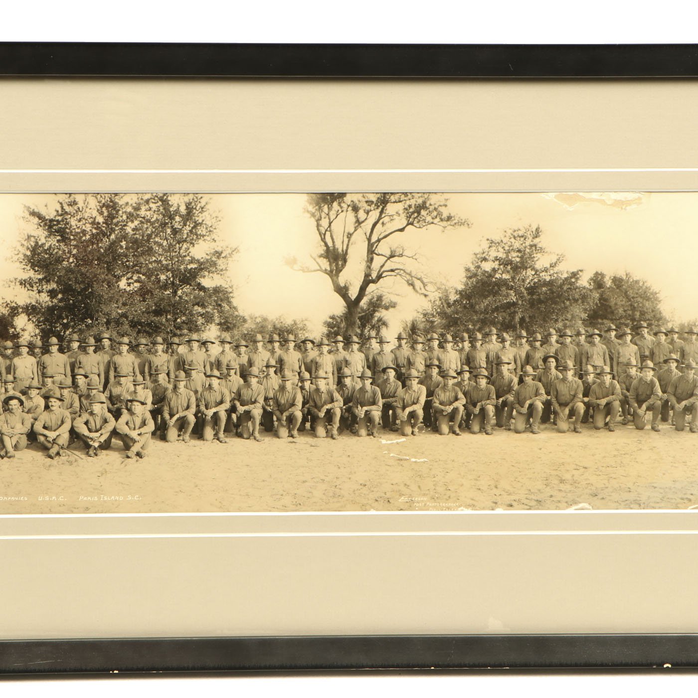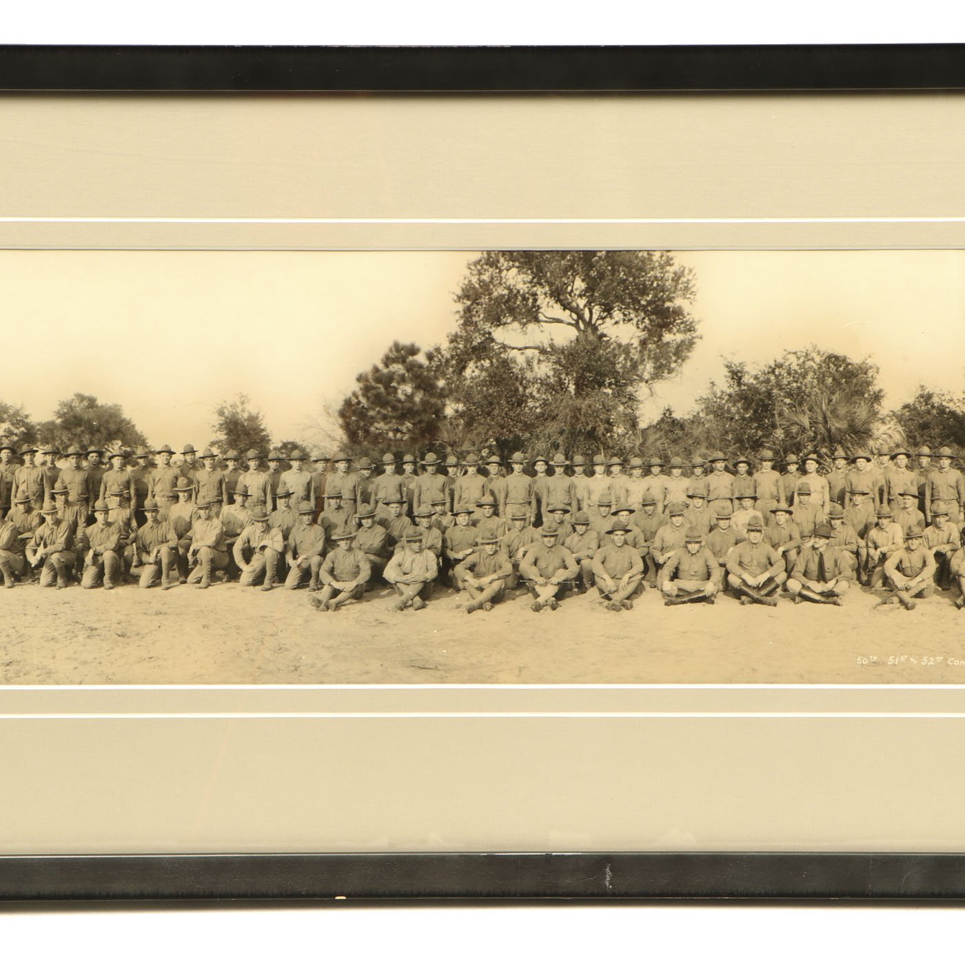 Original Items: Only One Available. This is a United States Marine corps unit photo known as a "yard long". The photograph of features the 50th, 51st, and 52nd Companies of the 5th Marine Regiment taken Parris Island, S.C. This photograph is professionally framed and measures in the frame 48" x 14" x 1.5".