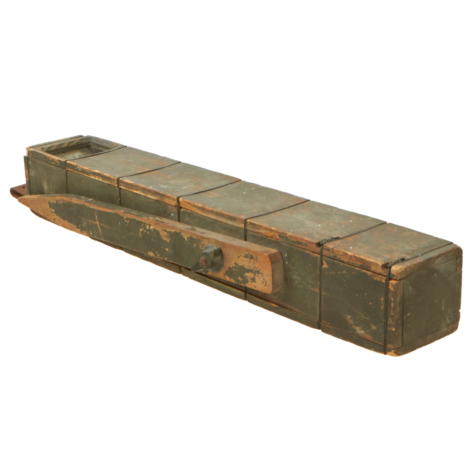 The periscope appears to be in wonderful condition, with the mirrors exhibiting great shape, albeit with some scratches, dust and dirt accumulation. The wooden housing has some expected wear and chipping, indicating that it is an item of significant age that saw solid field use. The length of the periscope measures just above 14 inches, making it a desirable item for collectors and enthusiasts alike.