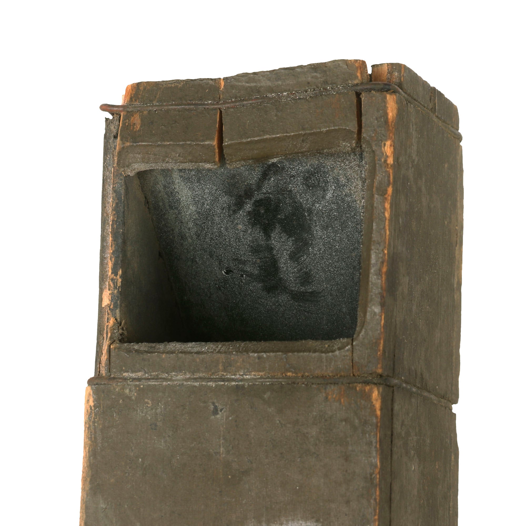 The periscope is an optical device that employs two opposing glass mirrors, one at the top and one at the bottom, held in a wooden case that is secured by twisted wire. Although its design is fairly basic, it was a cost-effective and efficient tool that could be mass-produced during its time. The utilization of this device was instrumental in various fields, and its simple construction allowed for widespread use.