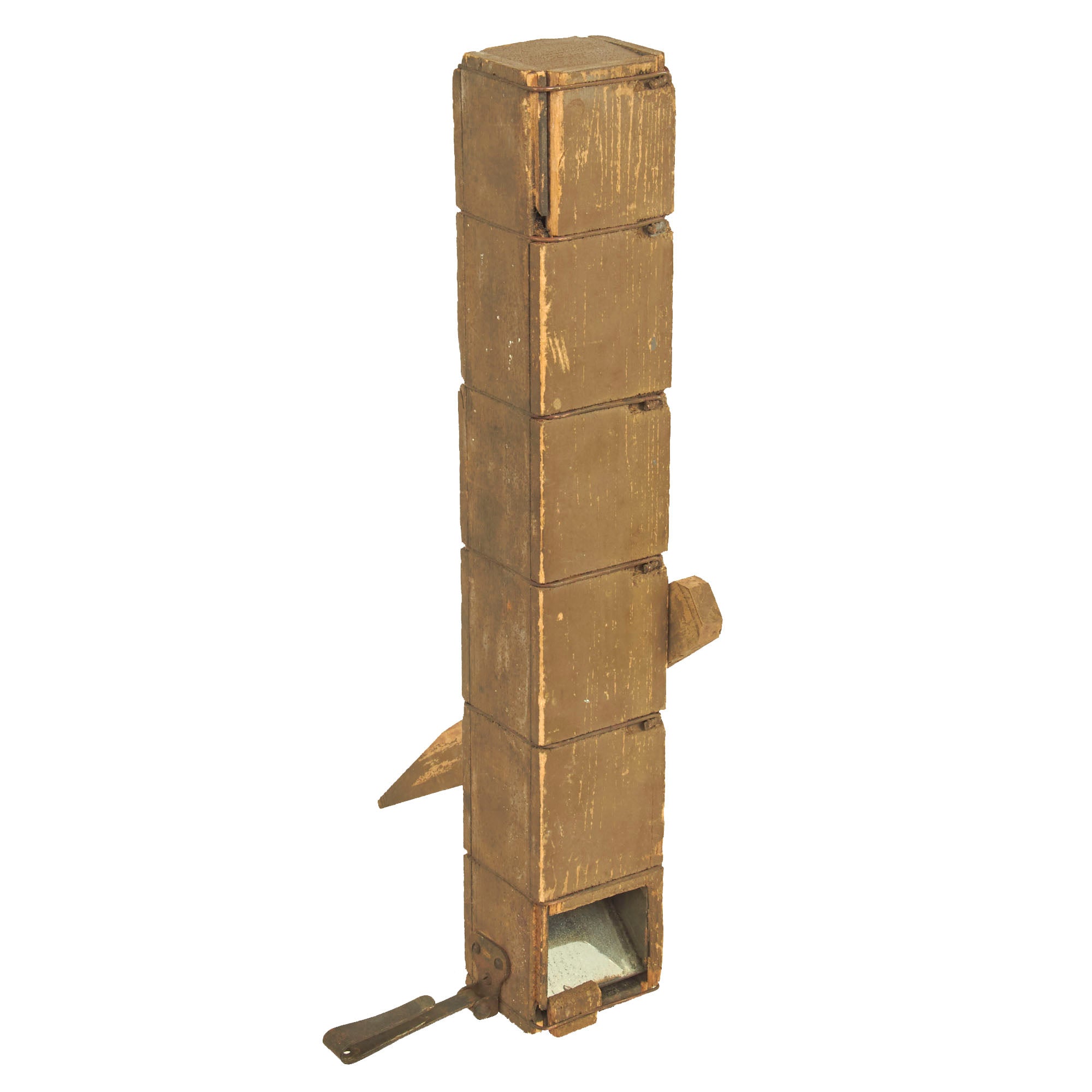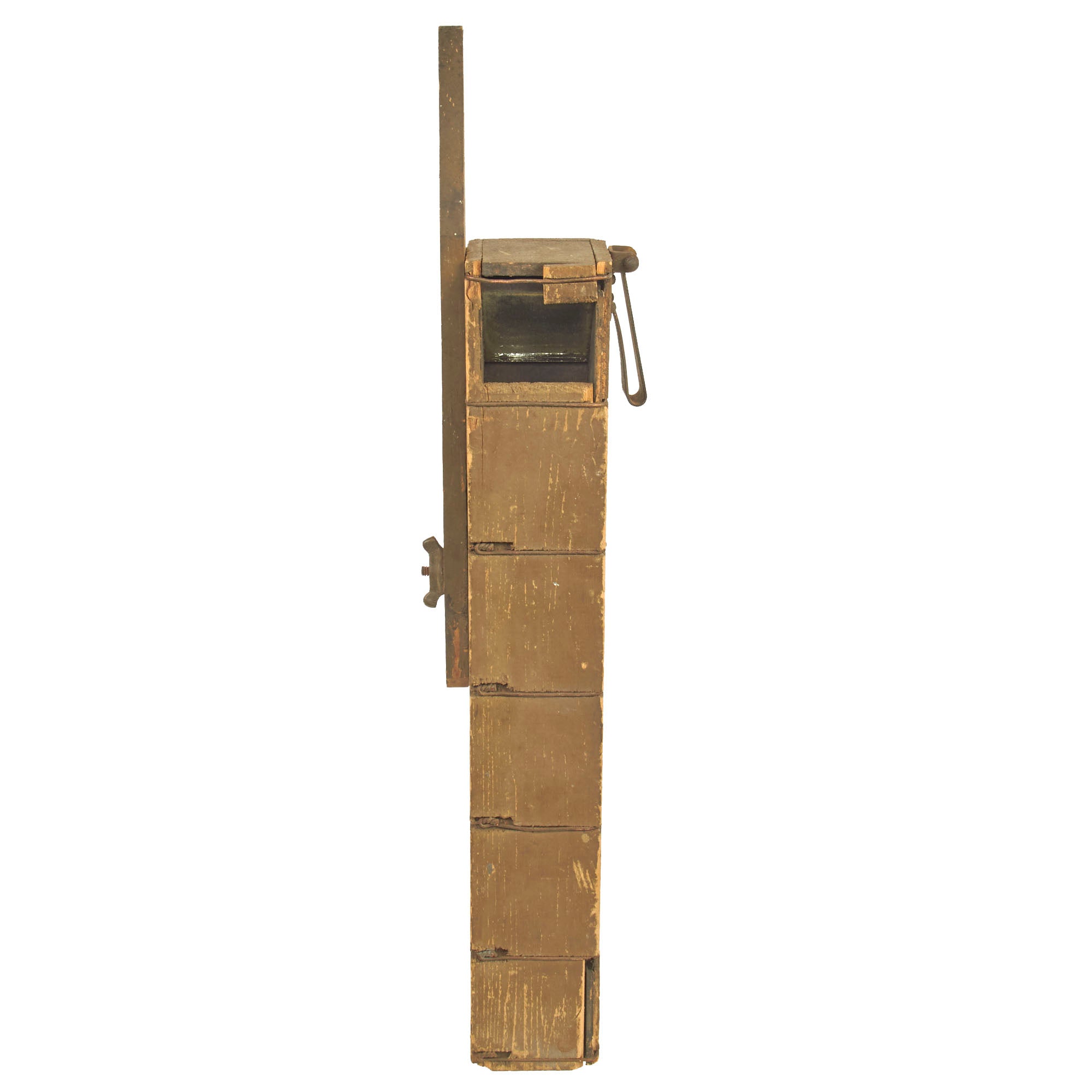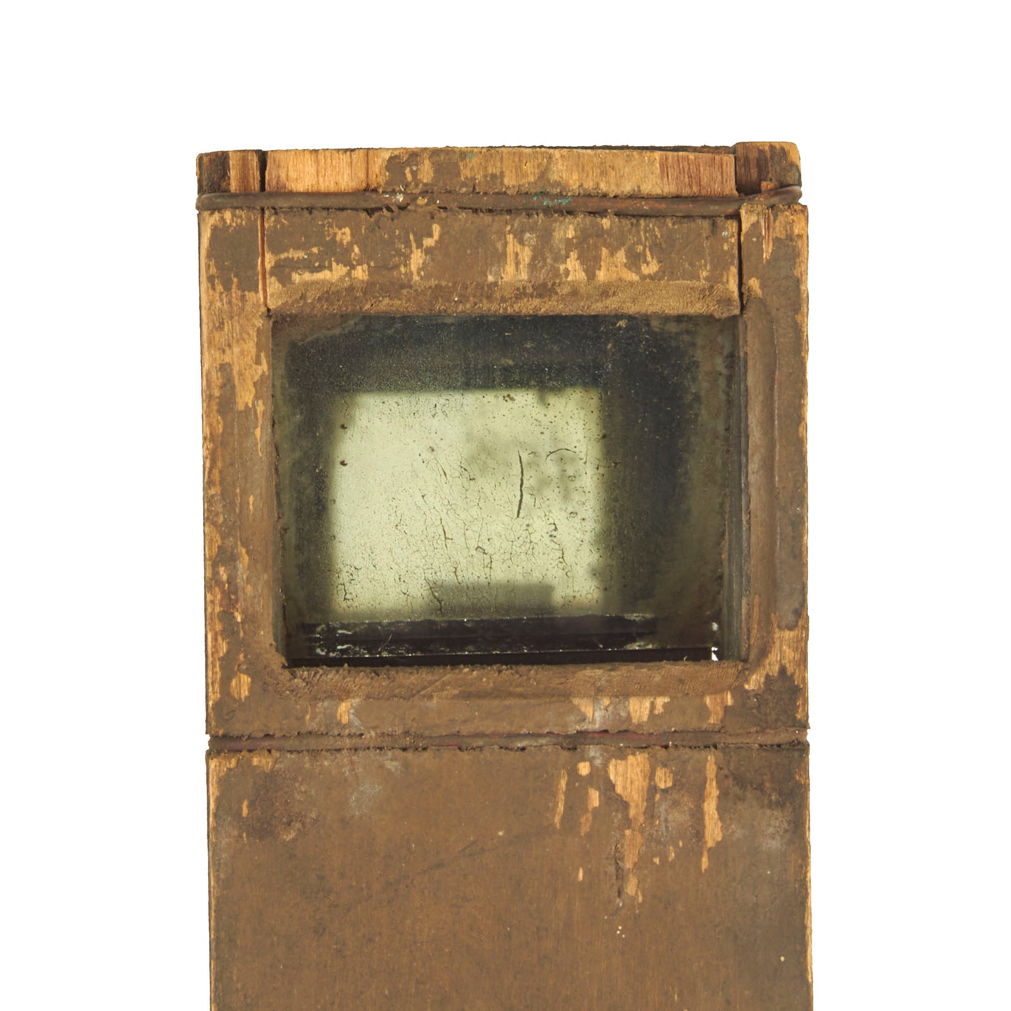 The battlefield is viewed by the use of two opposing glass mirrors, one top, one bottom, held in a wooden case held together by twisted wire. A fairly crude design but it got the job done, and was cheap and easy to mass produce at the time.