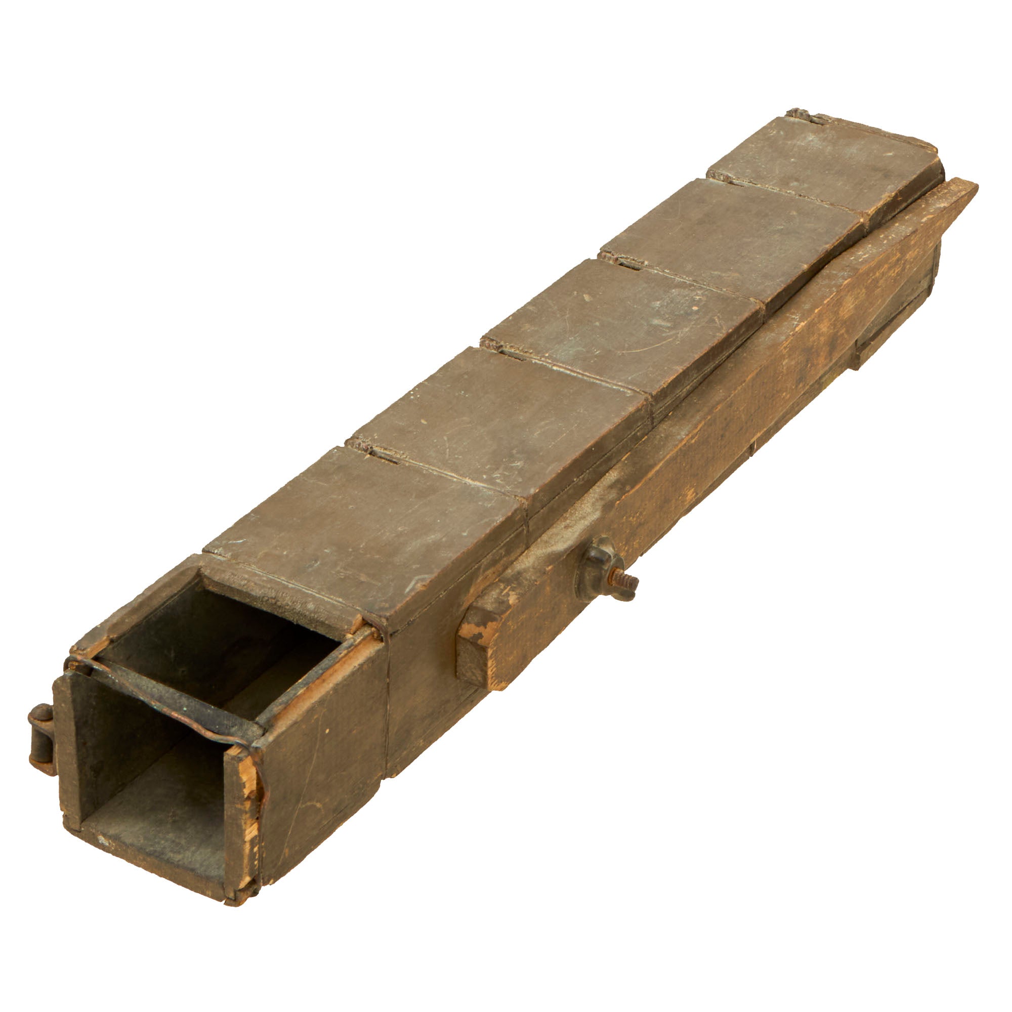 The periscope is in very good condition, with the mirrors in great shape, just a little dirty. There is a bit of wear and some chipping to the wooden housing, but that is to be expected on any item this age. Unfortunately the top piece of wood is missing, showing the top of the mirror now. Measures just over 14 inches in length.