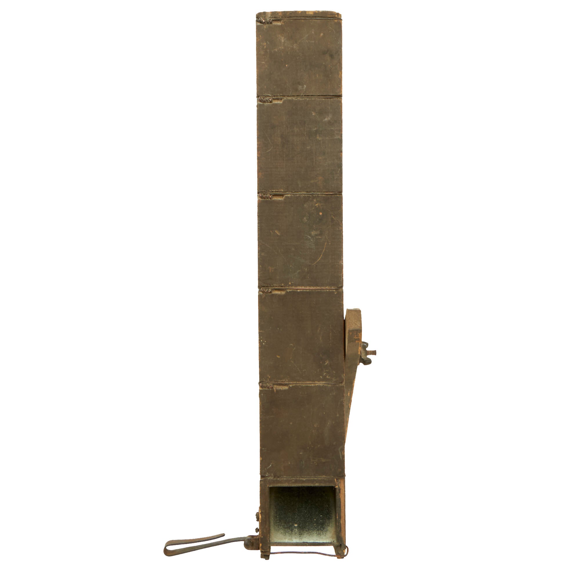 Original Item: Only One Available. This is an original WWI essential; the life saving trench periscope! Truly an invaluable item while engaged in trench warfare, this periscope is a WWI survivor. It remains in good original condition, retaining much of its U.S. WWI olive drab green paint. The periscope is complete with its original adjustable leg and belt clip.