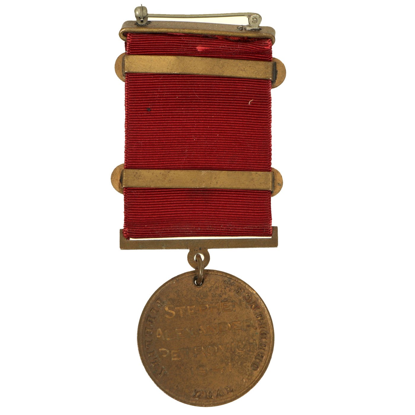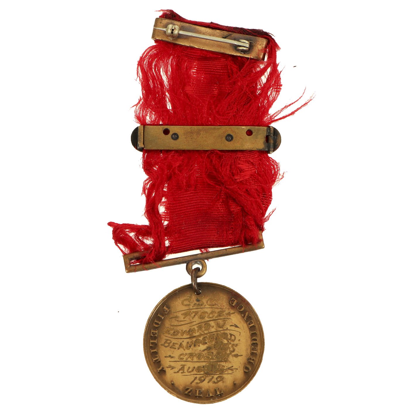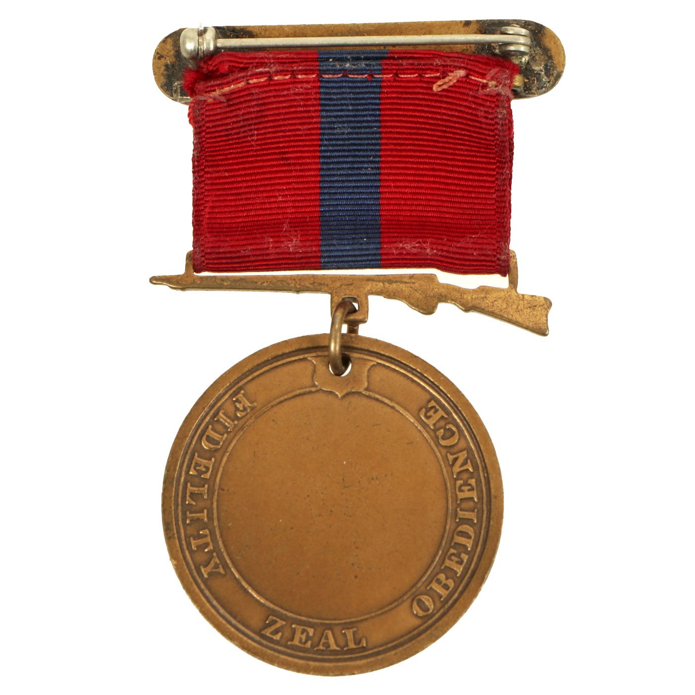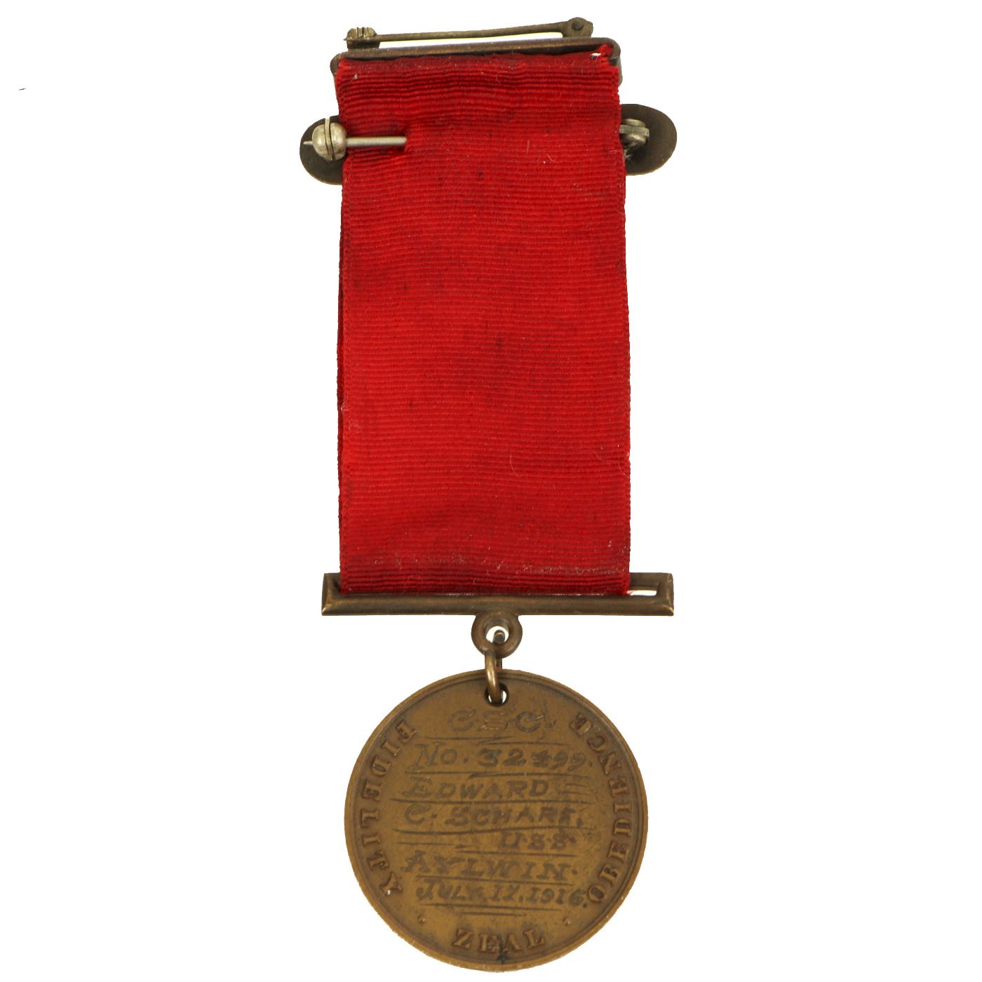 The second version of the Navy Good Conduct Medal was issued between 1880 and 1884. The medal was considered a "transitional decoration" and was the first of the Good Conduct Medals to be worn on a uniform. The medal was phased out by 1885 and a new medal issued between 1885 and 1961. The new medal was a Good Conduct medallion suspended from an all red ribbon. Enlistment bars, denoting each honorable enlistment completed, were pinned on the ribbon as attachments.