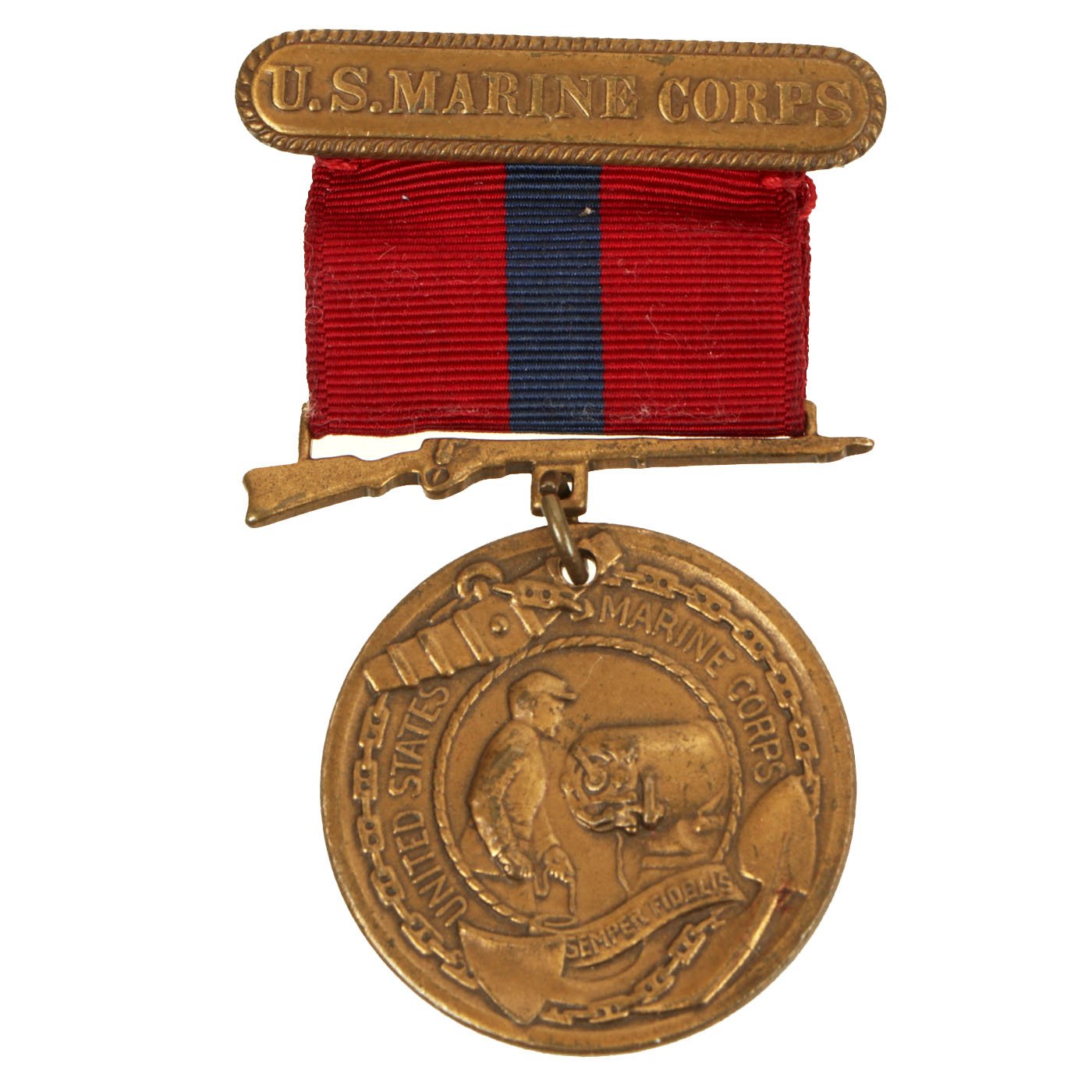 There was slight oddity during the Spanish–American War when the Navy created the Specially Meritorious Service Medal which also had an all red suspension and service ribbon. There were recorded cases of Navy enlisted personnel who were awarded both the Good Conduct Medal and the Specially Meritorious Service Medal who wore two red service ribbons on their Navy service uniforms. This is one of the rare times in the history of U.S. military awards that two awards had identical ribbons.