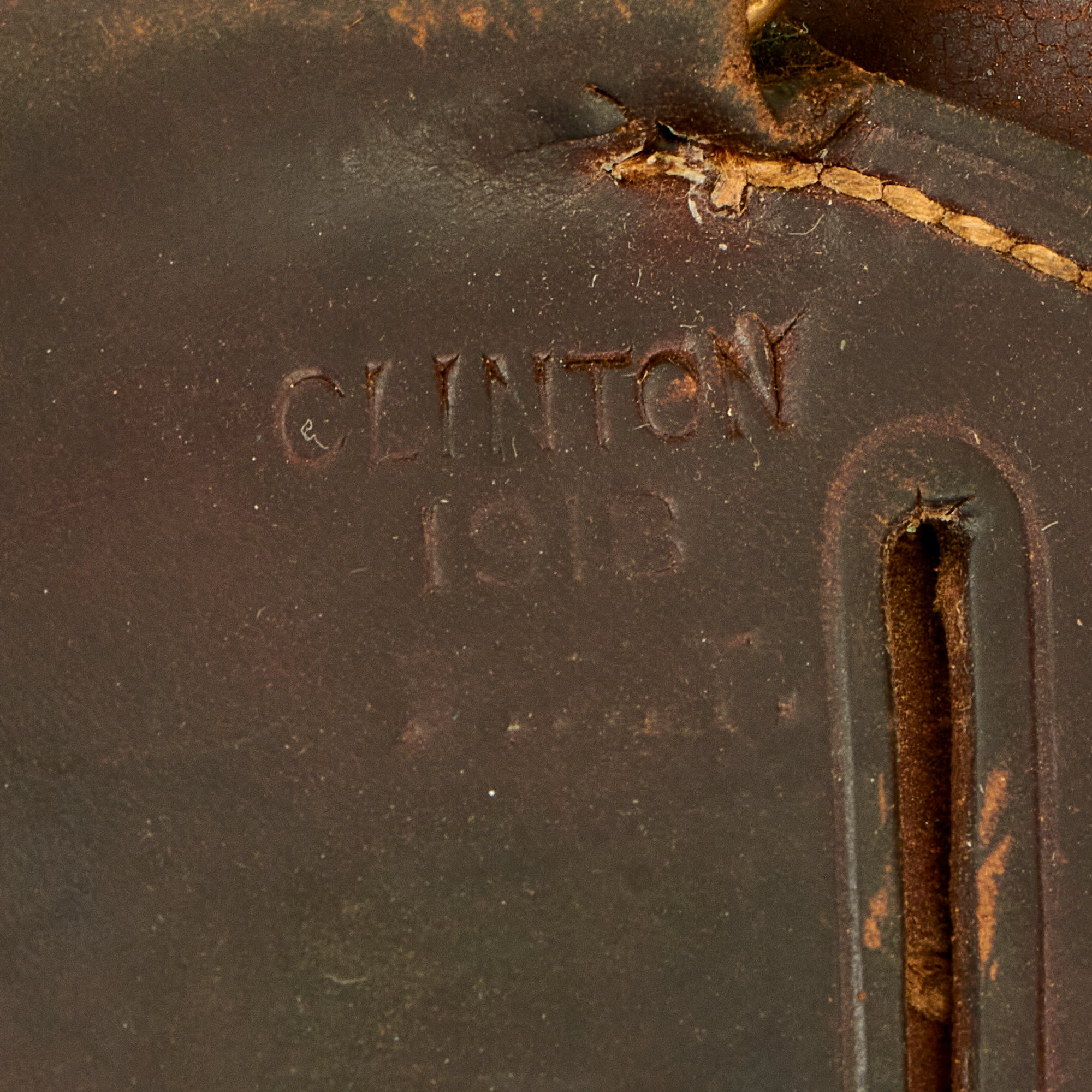 - M1916 Holster: The holster is in great shape, with only light staining, and retains its original russet leather color, having never had oil applied which would darken the leather. The leather is slightly stiff from age. The reverse is maker marked very faintly with CLINTON and is dated 1918.