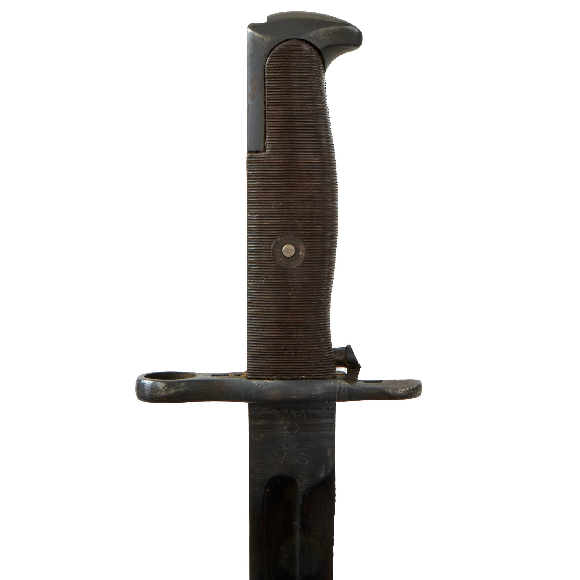 An unaltered 16” WWI M1905 Springfield rifle bayonet by SA, reissued for use in WWII!