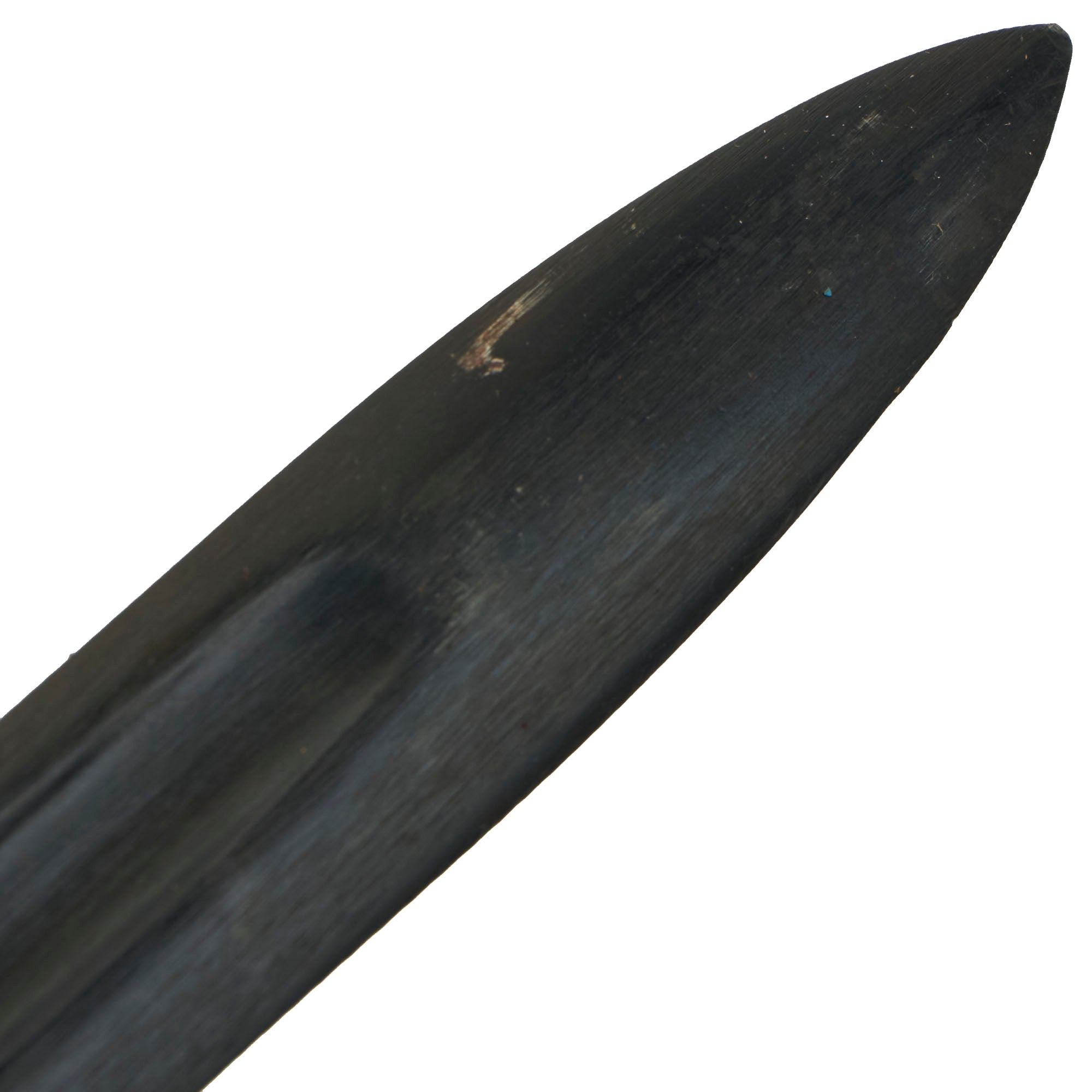 The blade is in great shape with a nice edge, and in many places the original factory grinding marks can still be seen. The blade retains nearly all blueing from when the bayonet was reissued for use during the WWII era. The hilt assembly also retains nearly all blued finish.