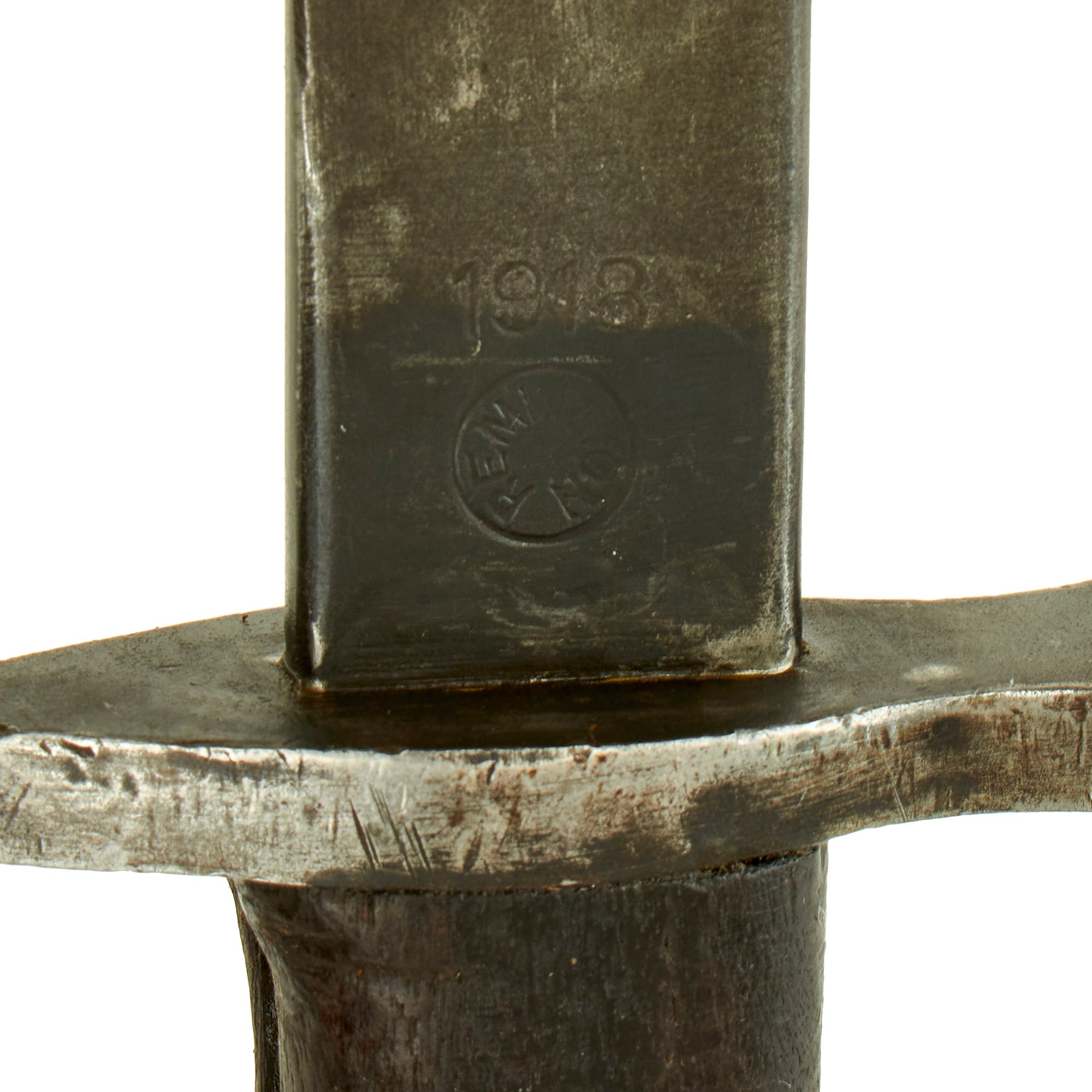 The M1917 bayonet was designed to be used with the US M1917 Enfield .30 caliber rifle, as well as with the seven different U.S. trench shotguns. The blade is 17 inches (43.18 cm) long. The M1917 Enfield was the U.S. Version of the British P-14 rifle, and the bayonets used are identical, down to the double groove in the grips, used to differentiate the bayonets from the P-1907 for the SMLE rifle. These will all have maker markings, but they may be faint. Most of these were made by Remington and Winchester.