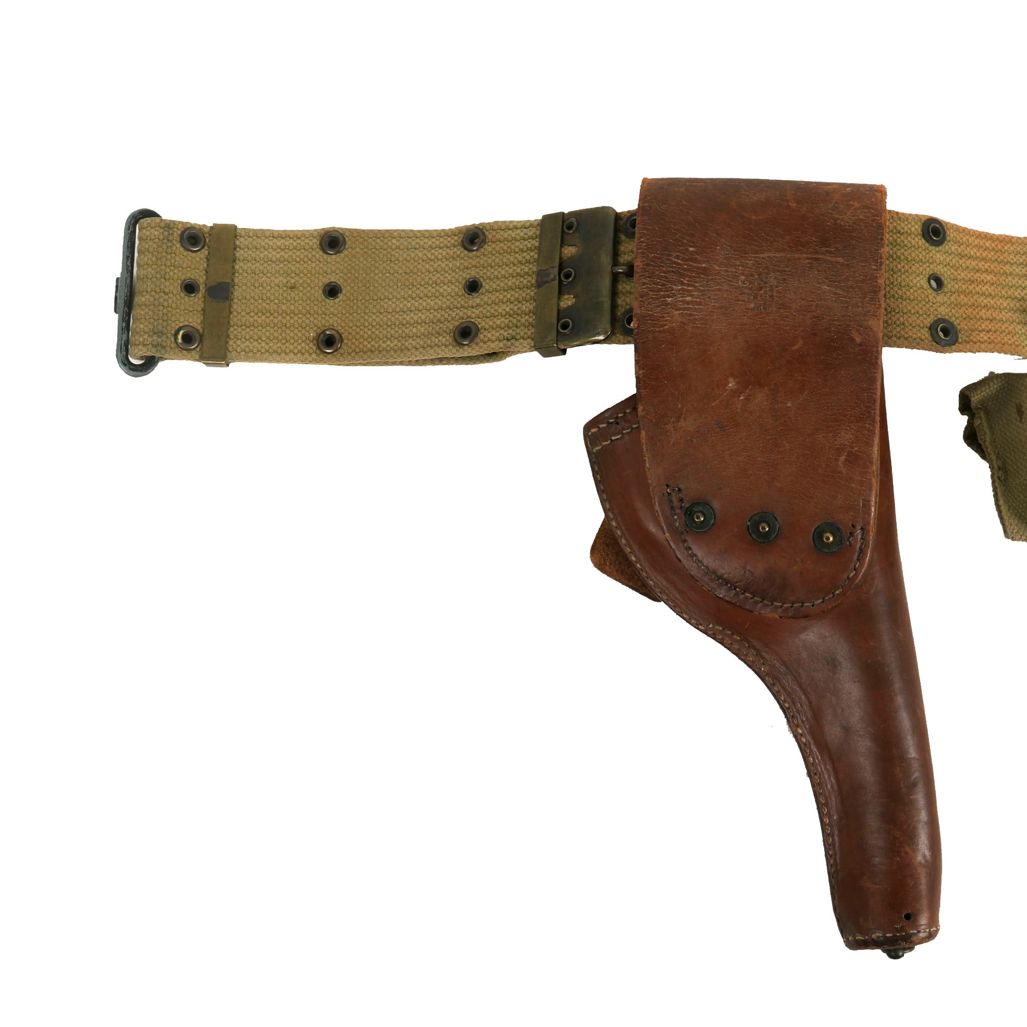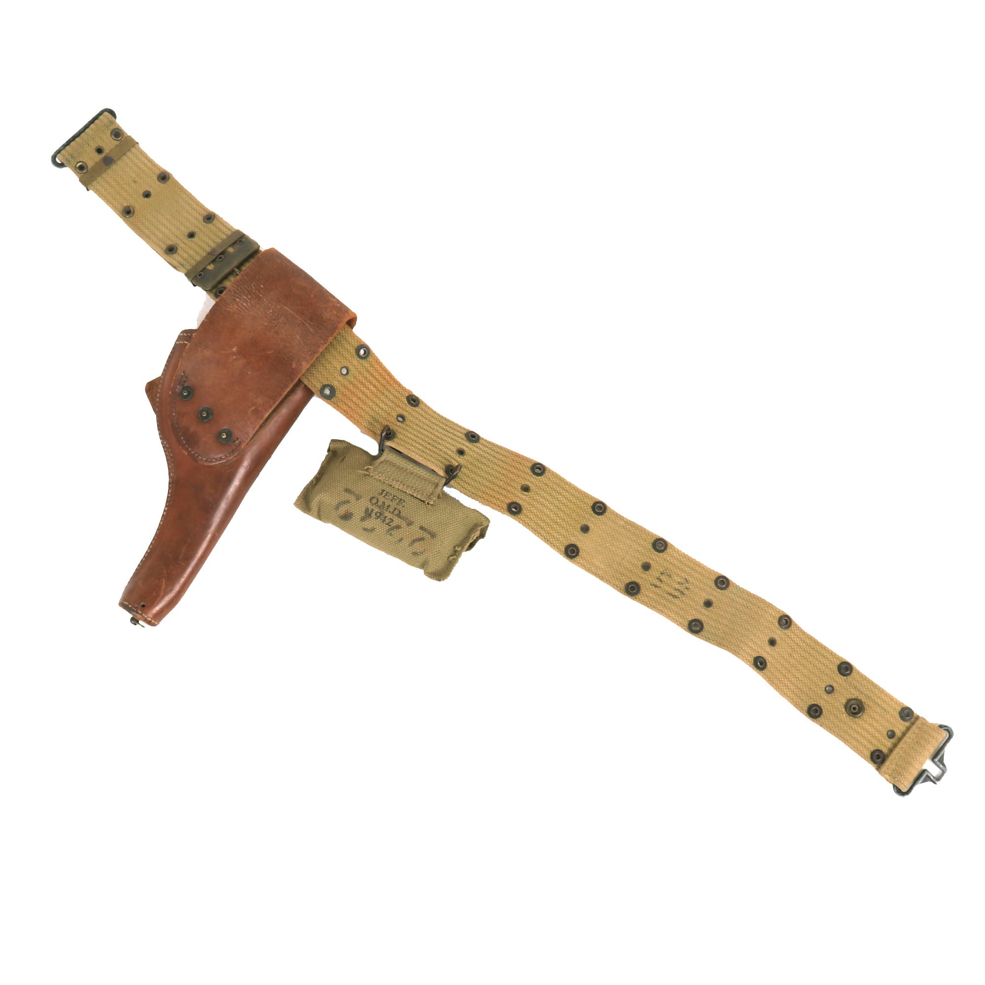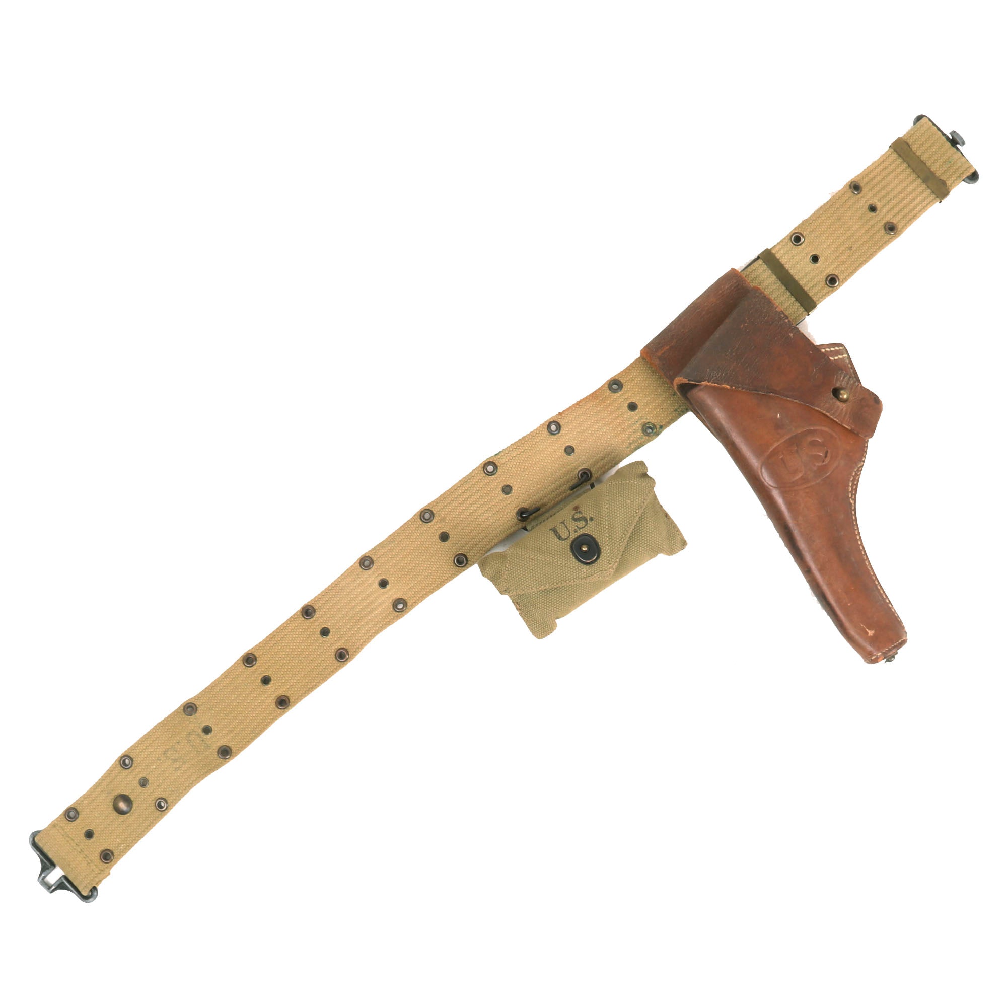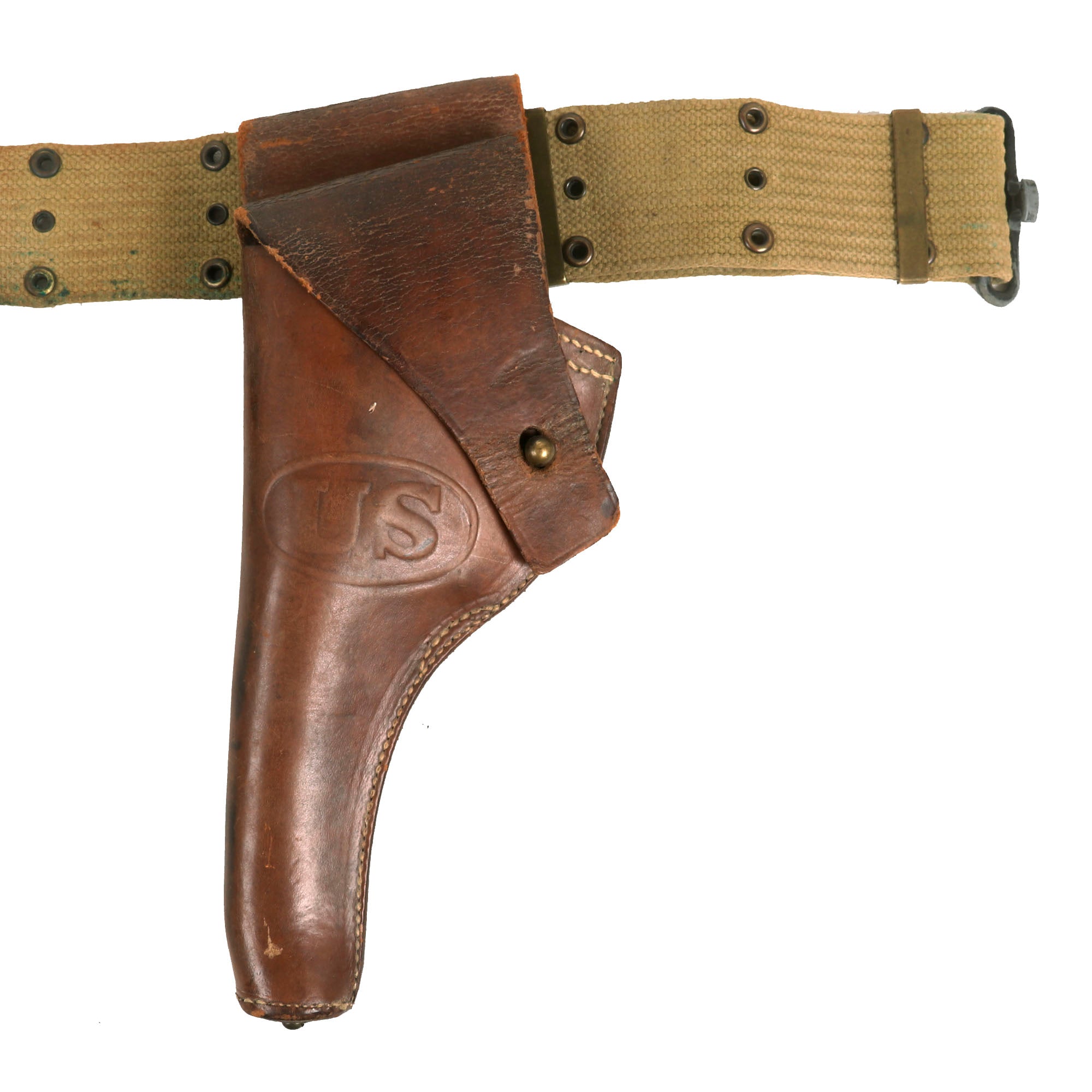 Original Item. Only One Available. This is a really phenomenal pistol belt rig for an officer or NCO with a 1918 dated holster for the M1917 Revolver. The M1917 Revolvers were six-shot, .45 ACP, large frame revolvers adopted by the United States Military in 1917, to supplement the standard M1911 pistol during World War I. There were two variations of the M1917, one made by Colt and the other by Smith & Wesson. They used moon-clips to hold the cartridges in position, facilitate reloading, and to aid in extraction since revolvers had been designed to eject rimmed cartridges and .45 ACP rounds were rimless for use with the magazine-fed M1911.