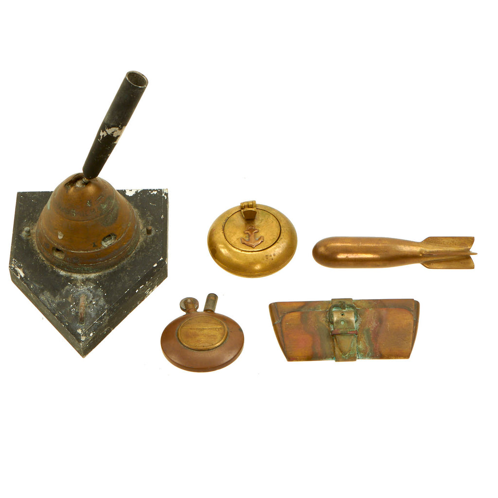 Original Items: Only One Lot of 5 Items Available. Trench art is any decorative item made by soldiers, prisoners of war, or civilians where the manufacture is directly linked to armed conflict or its consequences. It offers an insight not only to their feelings and emotions about the war, but also their surroundings and the materials they had available to them.