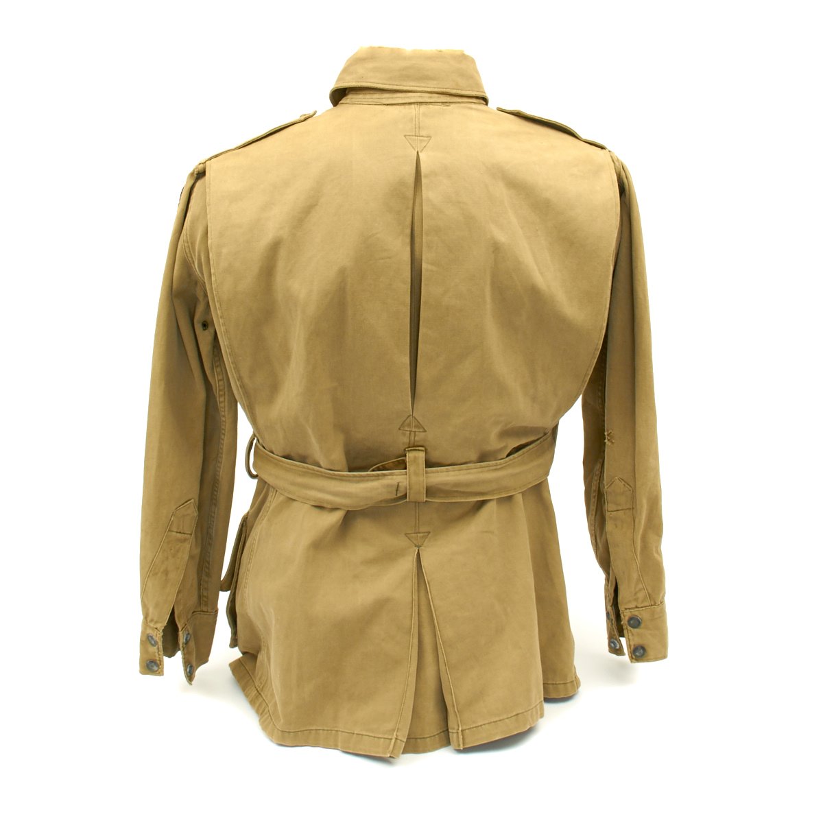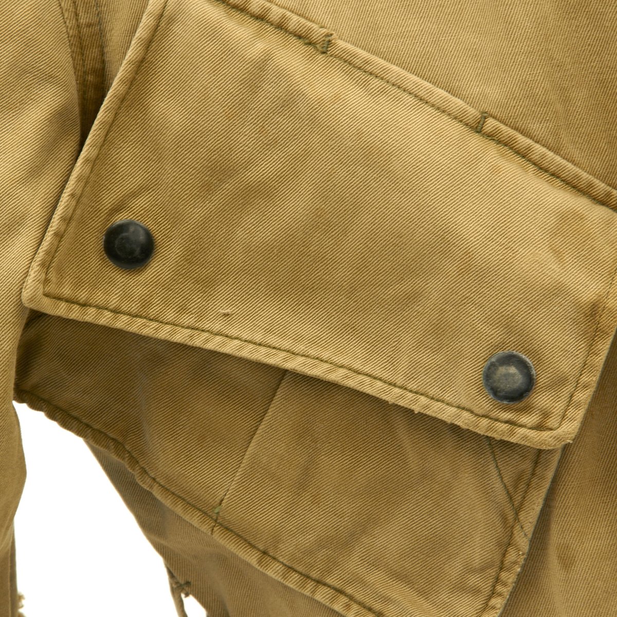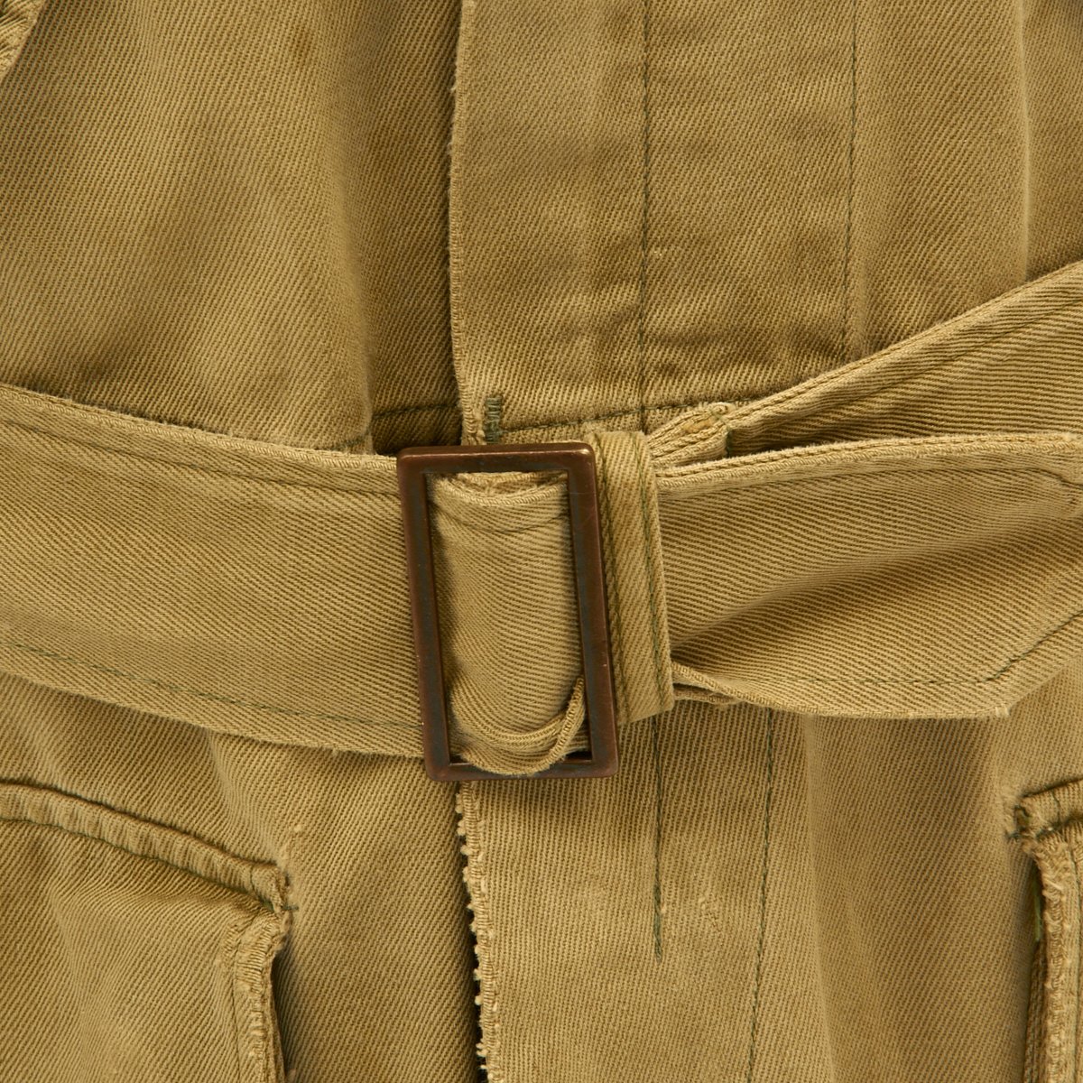 Due to the somewhat fragile nature of the uniform, however, the M42 was often reinforced with thicker, tougher canvas on the elbows, crotch and knees. However, this example was never reinforced. The M42 was mostly worn by Paratroops assigned to Airborne units. The M42 was eventually phased out in favor of the M1943 Uniform which was a darker green, OD #7. Despite this, various individuals chose to keep their M42s in order to show their veteran status.