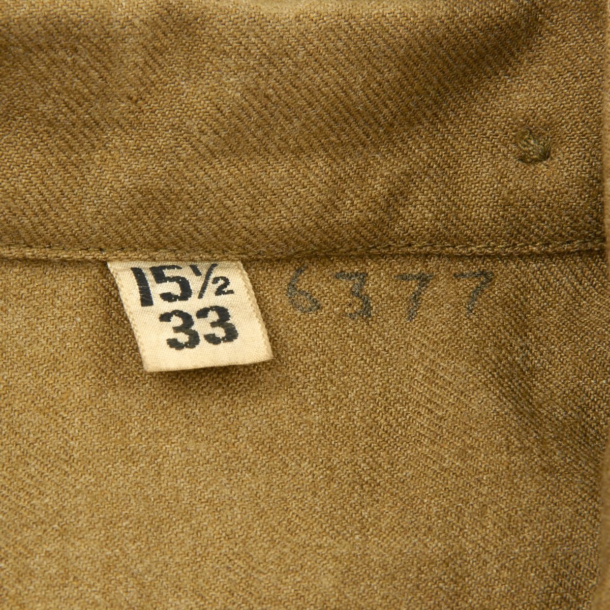 - Standard Army issue wool shirt with 82nd Airborne patch on left shoulder. Shirt is marked with laundry number 6377.