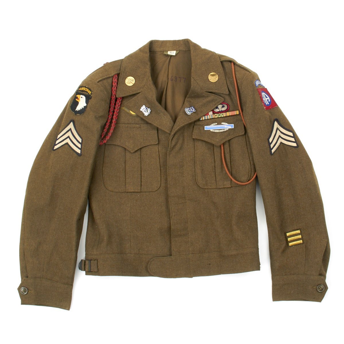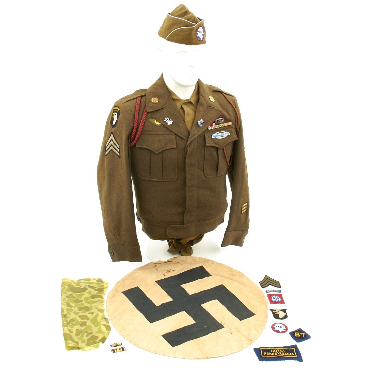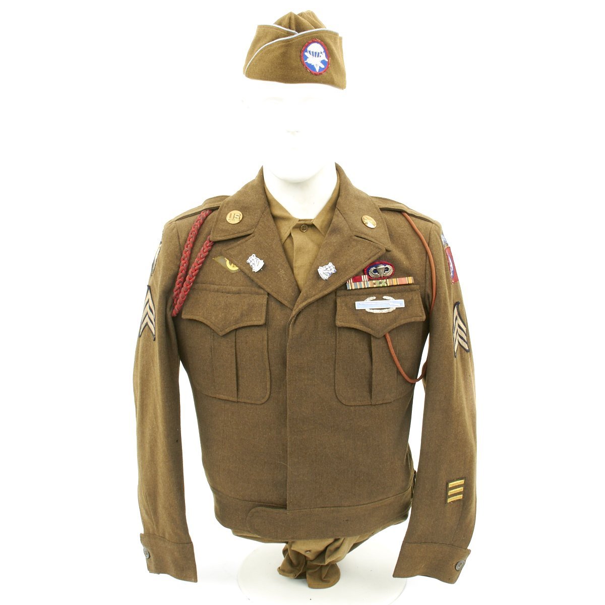 This is a wonderful uniform grouping that belonged to Sergeant Zygmunt Chmielewski, who was a member of Company A, 1st Battalion, 506th Parachute Infantry Regiment, 101st Airborne Division. The 506th PIR is the same regiment that was depicted in the book and HBO series BAND OF BROTHERS. Subsequently, identified named 506 material is some of the most sough after U.S. WWII collectibles on the market today.