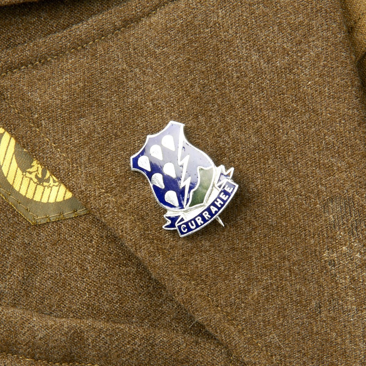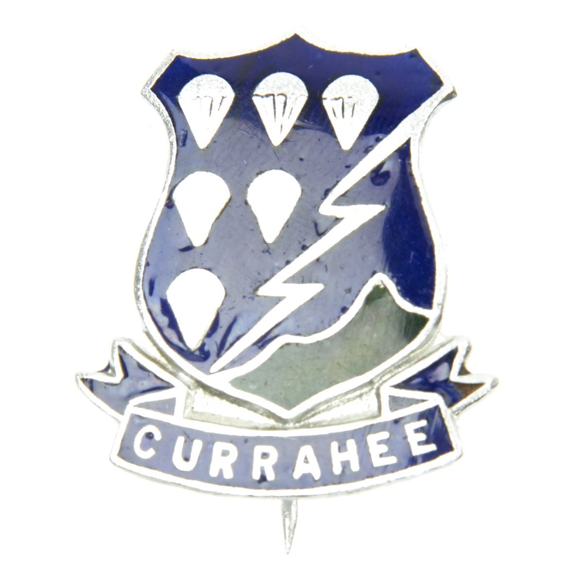 - Winter Issue WWII Ike jacket with Chmielewski's laundry number in the neck of the lining which reads C-6377. Stunning totally original 506th Parachute Infantry Regiment enamel and sterling silver pin back CURRAHEE Distinctive Unit Insignias on each lapel. The Ike jacket is in excellent condition and is a size 36R. Notable features are as follows: