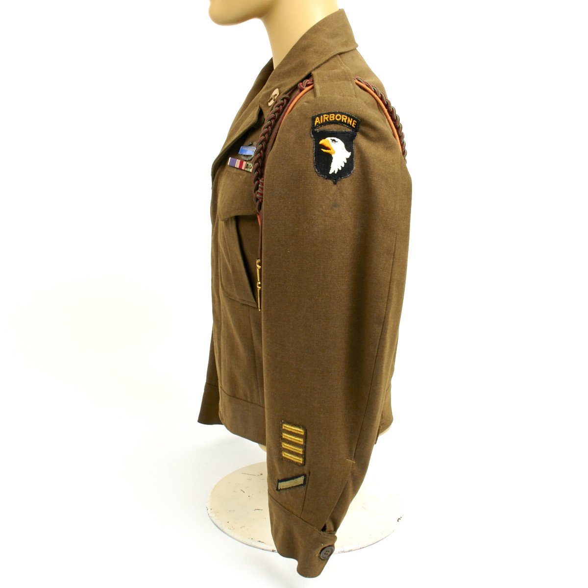 Original Item: Only one available. This is an excellent condition WW2 Ike jacket worn by a member of the 101st Airborne that jumped into occupied areas and took place in the legendary Operation Market Garden. This soldier, jacket is not named, served with both the 101st Airborne saw over 24 months of combat in the European theatre and was the recipient of a Purple Heart.