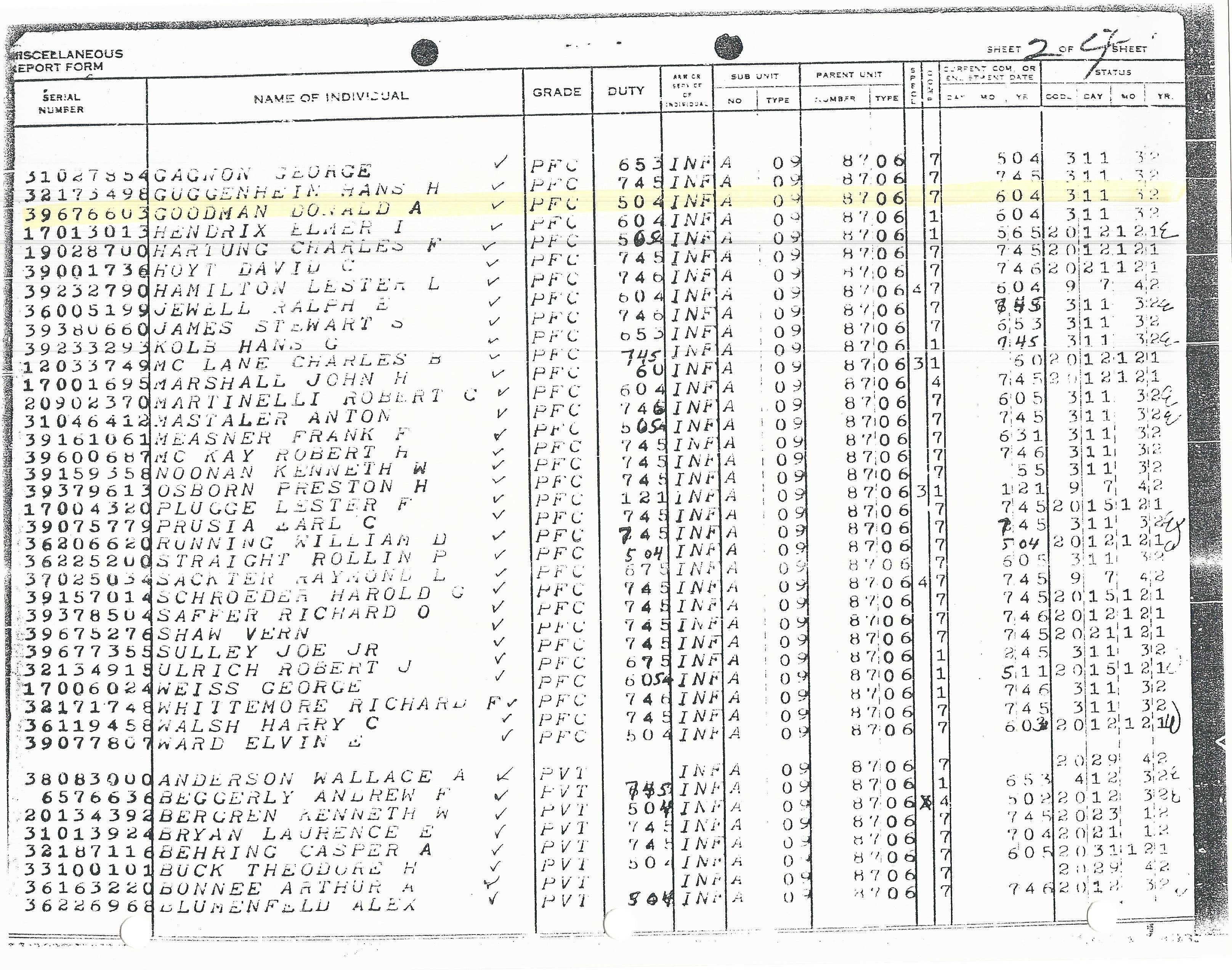 I wish we had further documentation, but it is likely anything else — including his separation papers —was destroyed in a devastating fire at the National Personnel Records Center in Missouri in 1973. Please do not hesitate to contact me in the future if you have any questions, or if there is anything else I can do for you.