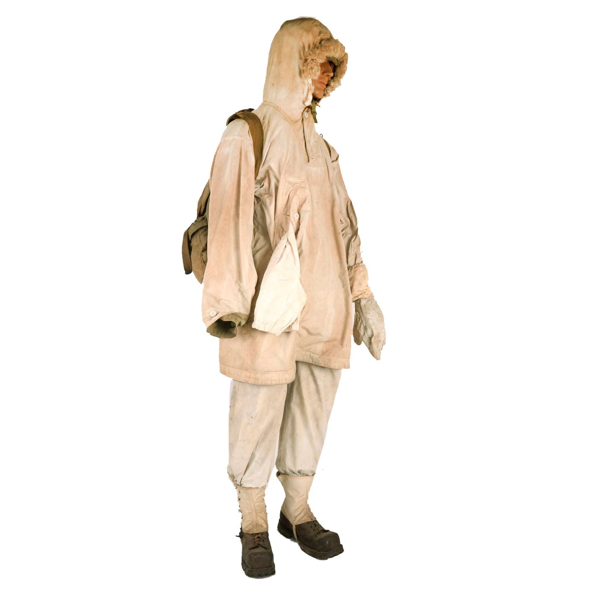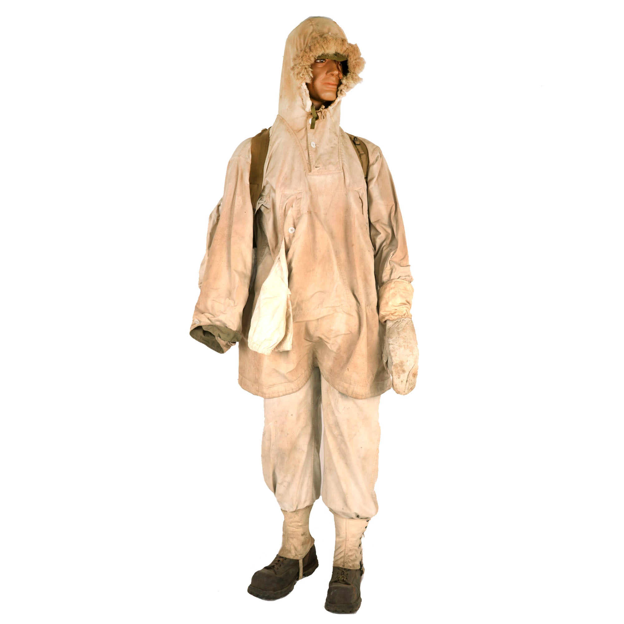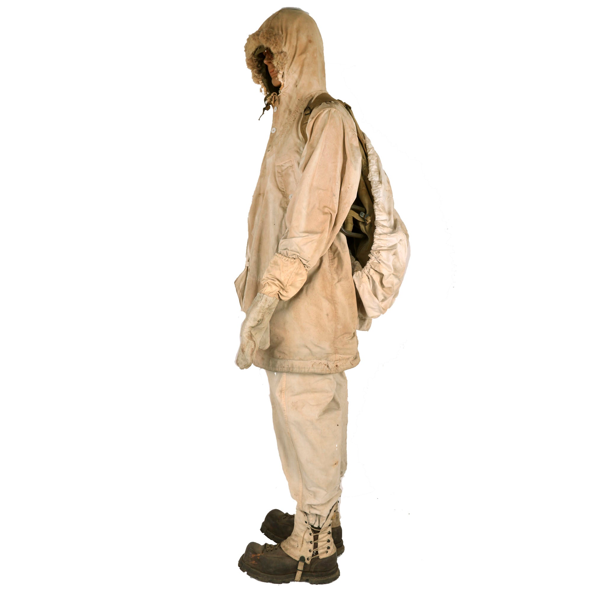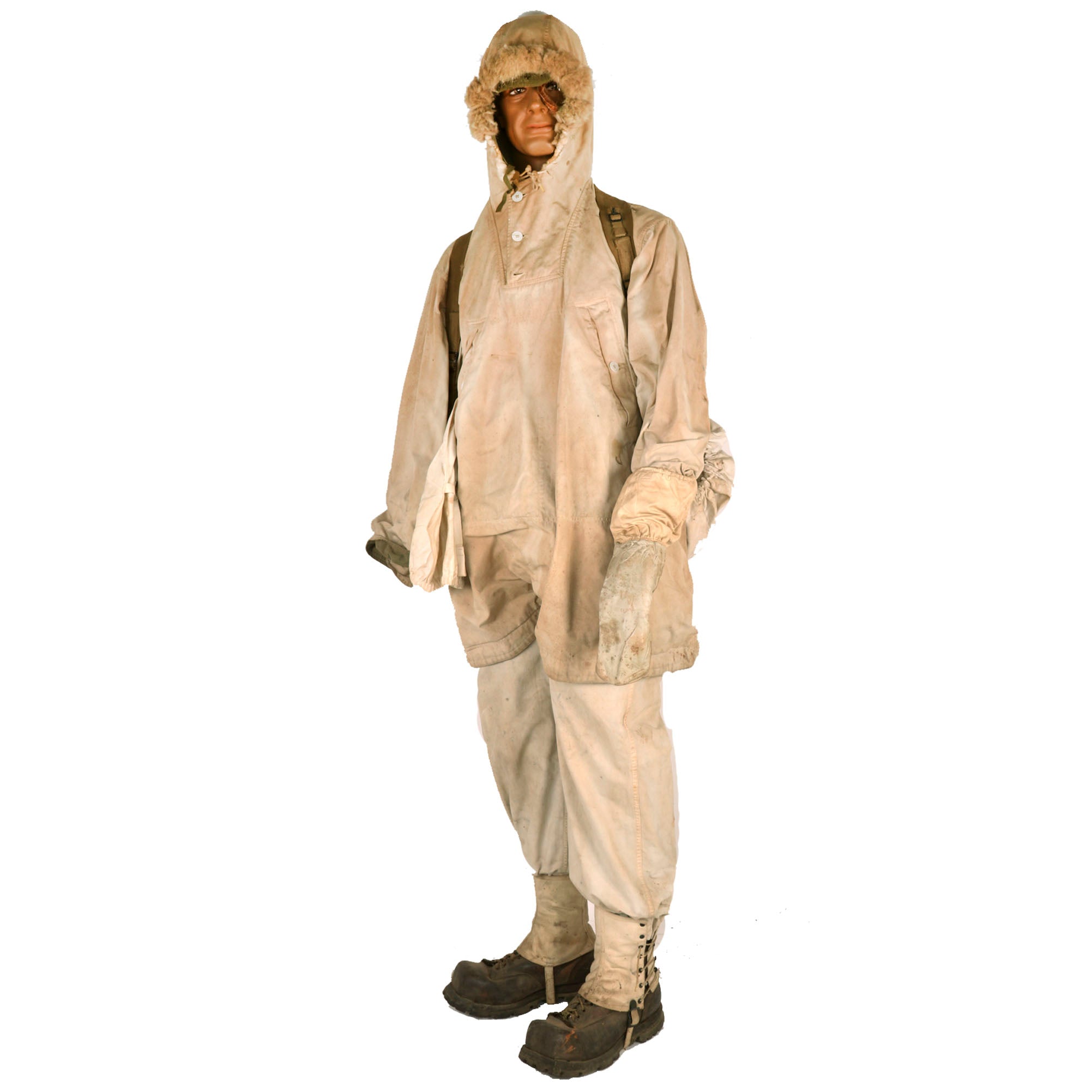- Mountain Troops Reversible Parka with Coyote Fur Lined Hood: This is a wonderful example of a rather difficult item to find. This reversible parka would have been a part of the US Army 10th Mountain Division. This parka was part of the early equipment for the 10th Mountain Division. Made of two layers of water repellent / windproof cotton poplin and trimmed with coyote fur cuffs and collar. The parka was both warm and reversible to account for the different environments, such as a snowy landscape. However its long length was not suitable for operations, and often these jackets are seen having been modified to be shorter, and it was soon replaced by updated designs. This one fortunately escaped that fate and is still in its original configuration with a great worn appearance.