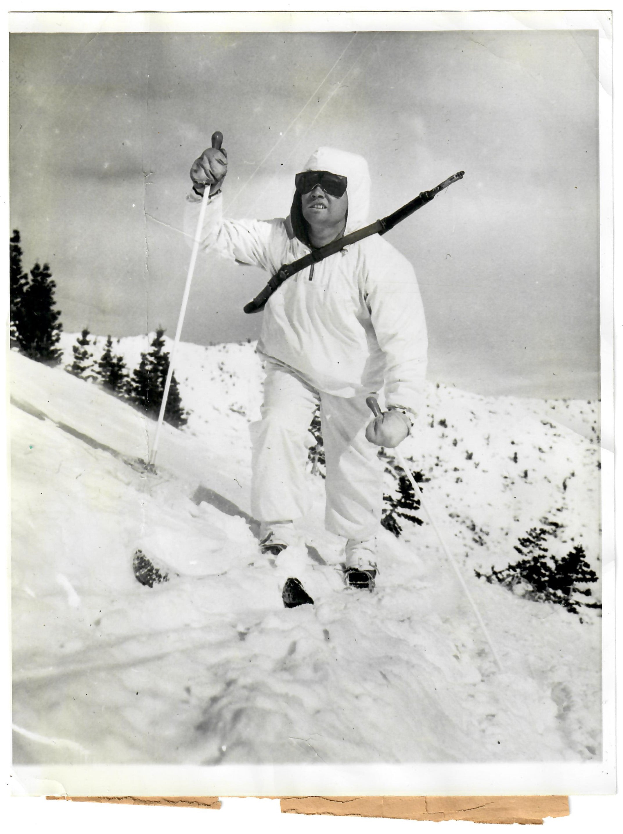 In 1941, Dole, who borrowed the mountain troop concept from the Finnish, began a robust campaign to persuade the military to establish a winter-warfare force. As a learned man, Dole knew the Finnish had used ski troops to effectively fight Russia in its history. At this point, the U.S. Army was training its troops to operate in hot environments and the idea of ”winter troops” wasn’t even on its radar. Initially rebuffed by the military, Dole was tenacious and continued to write and phone Pentagon officials and President Roosevelt until Army Chief of Staff, General George Marshall, adopted Dole’s mountain-troop idea. In December, 1941, twelve officers and one enlisted man were deemed the 87th Infantry, Mountain, First Battalion, Reinforced and were sent to Ft. Lewis, Washington, where they and soon-to-be-recruits trained on Mt. Ranier. Lt. Colonel Onslow “Pinkie” Rolfe became the first commanding officer.