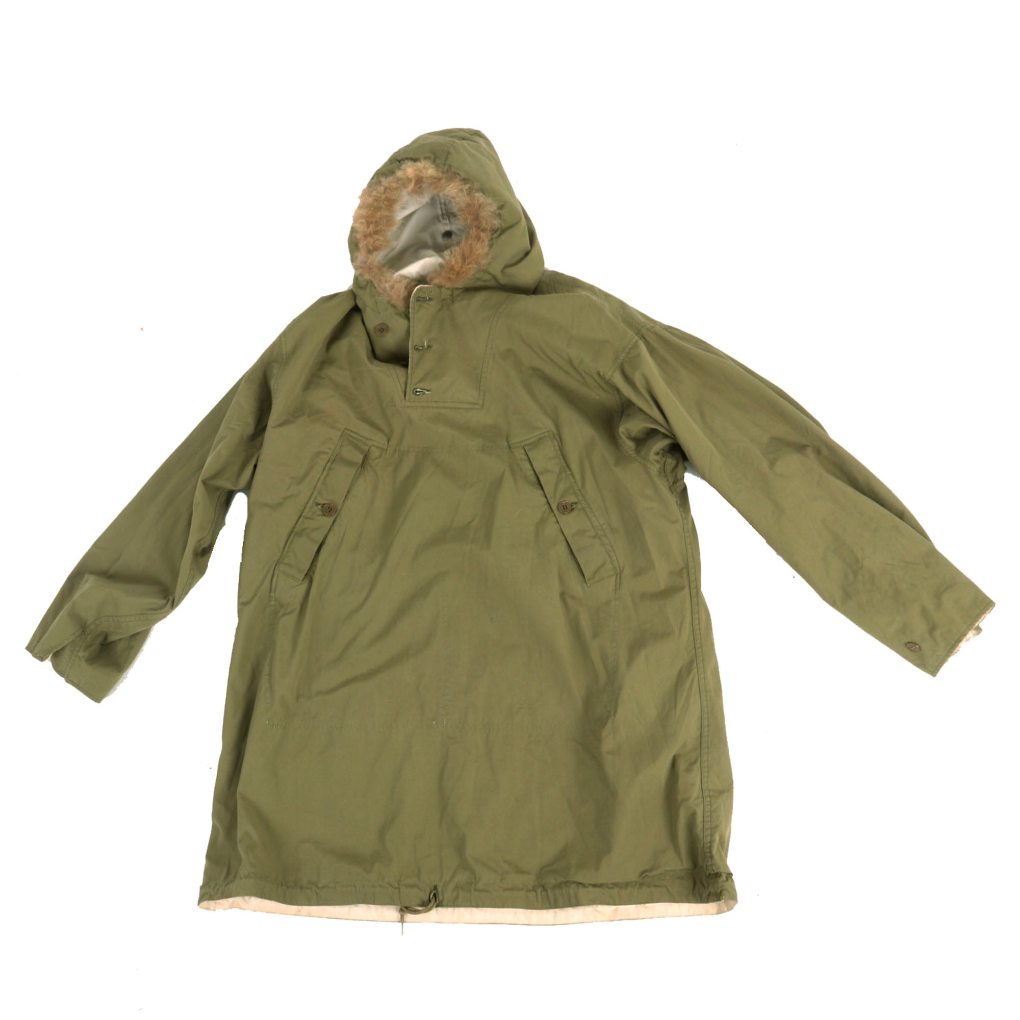 - Mountain Troops Reversible Parka with Coyote Fur Lined Hood: This is a wonderful example of a rather difficult item to find. This reversible parka would have been a part of the US Army 10th Mountain Division. This parka was part of the early equipment for the 10th Mountain Division. Made of two layers of water repellent / windproof cotton poplin and trimmed with coyote fur cuffs and collar. The parka was both warm and reversible to account for the different environments, such as a snowy landscape. However its long length was not suitable for operations, and often these jackets are seen having been modified to be shorter, and it was soon replaced by updated designs. This one fortunately escaped that fate and is still in its original configuration.