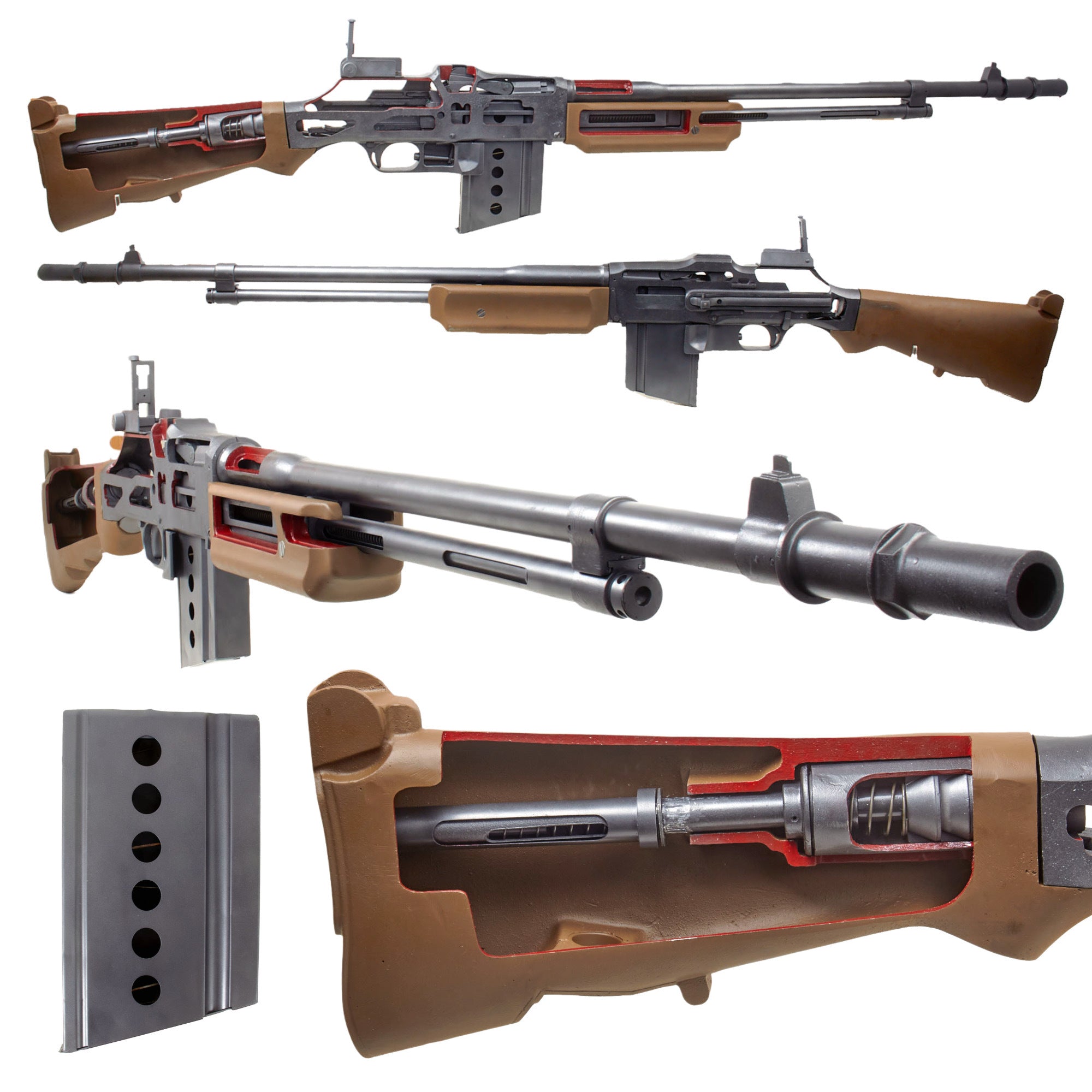 History of the BAR- The Browning Automatic Rifle (BAR) was a family of United States automatic rifles and light machine guns used by the United States and numerous other countries during the 20th century. The primary variant of the BAR series was the M1918, chambered for the .30-06 Springfield rifle cartridge and designed by John Browning in 1917 for the U.S. Expeditionary Corps in Europe as a replacement for the French-made Chauchat and M1909 Benet-Mercie machine guns.