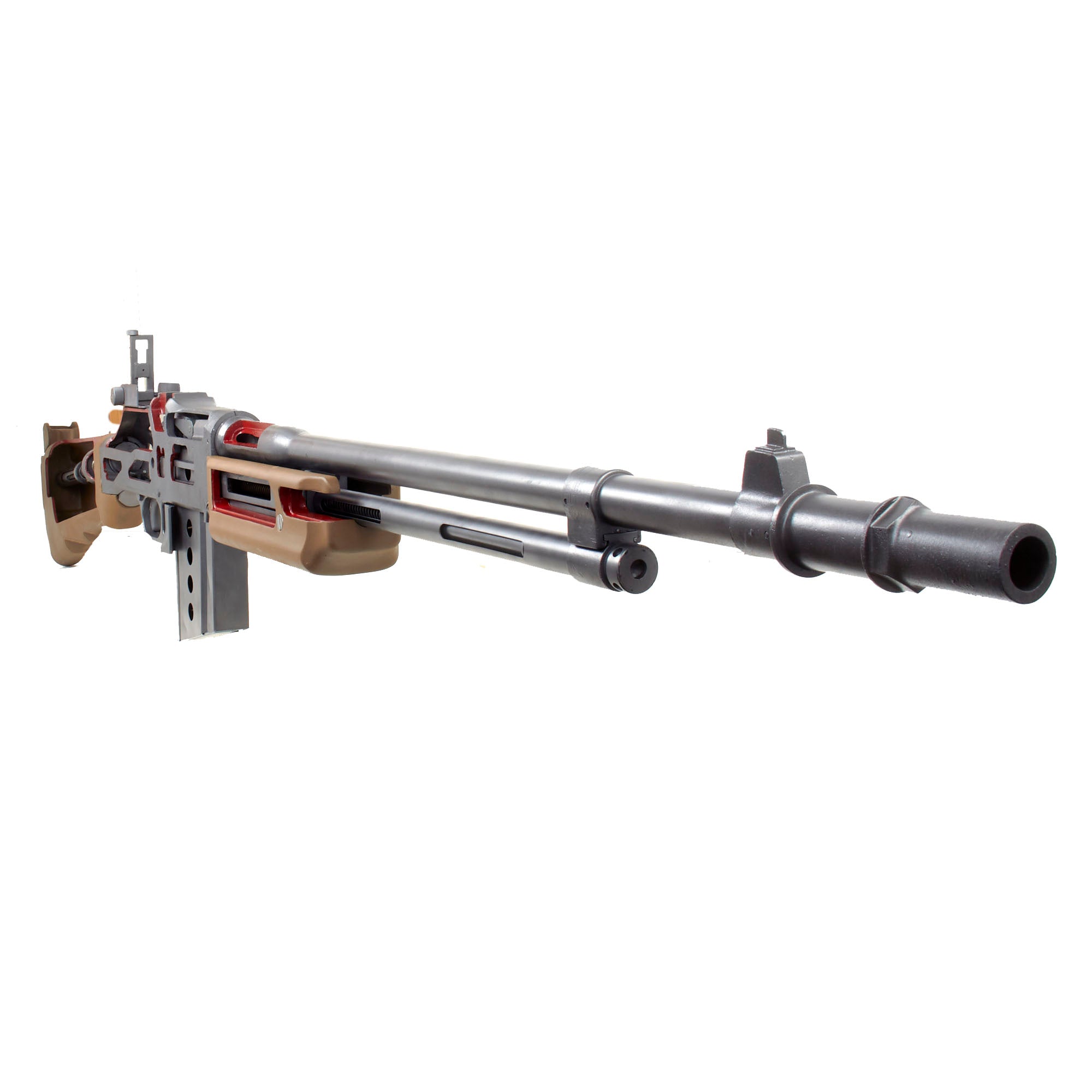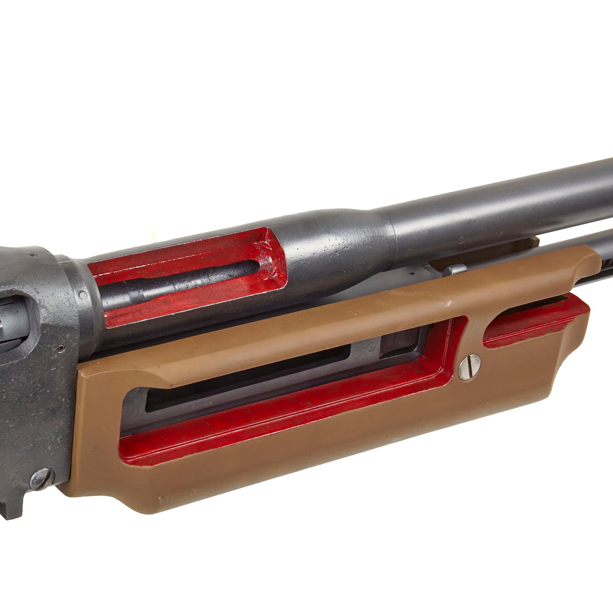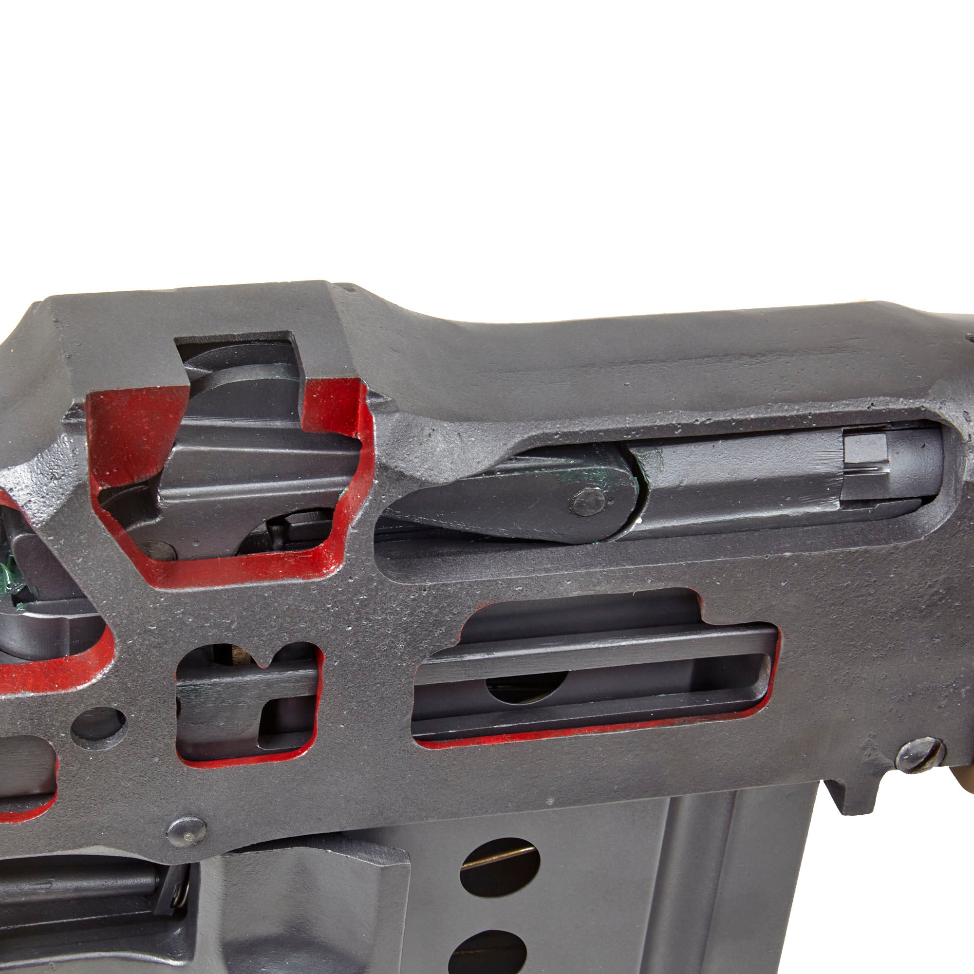 Original Item: Only One Available. This is an incredible World War Two J. H. KEENEY & CO. 1918 BAR cutaway USGI classroom non-functional enlarged training model. Oversized measuring approximately 95" in length and constructed of painted cast metal, this is a classroom demonstrator of the famous Browning M1918 Automatic Rifle for educating soldiers during WW2 on the inner workings and operation of the rifle, including the open bolt operation, magazine, feeding, etc.