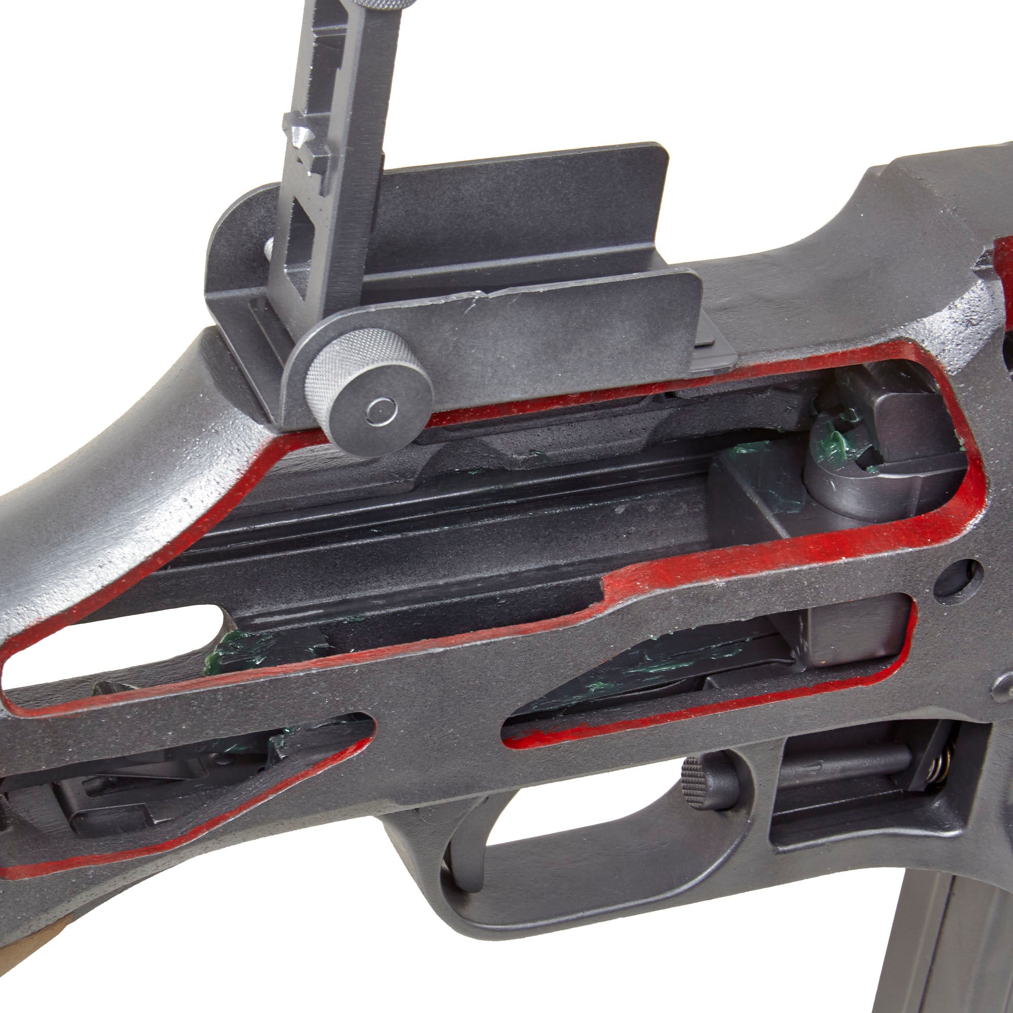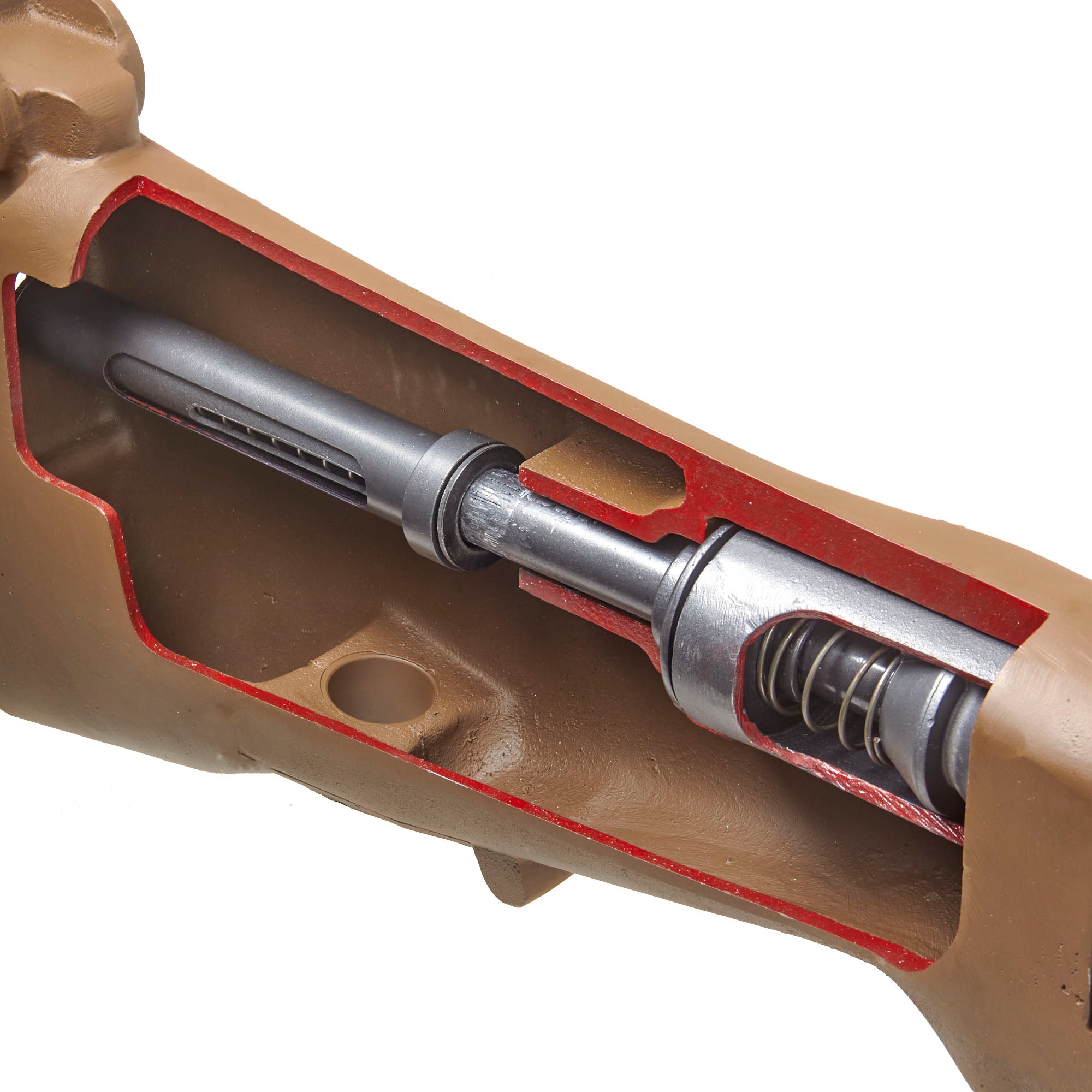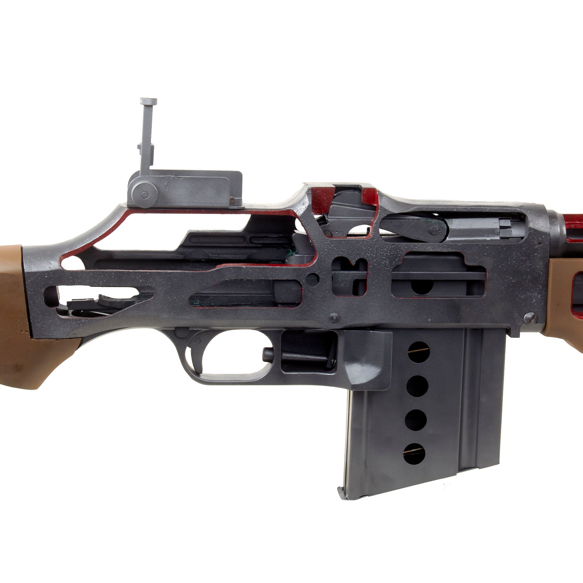 Original Item: Only One Available. This is an incredible World War Two J. H. KEENEY & CO. 1918 BAR cutaway USGI classroom non-functional enlarged training model. Oversized measuring approximately 95" in length and constructed of painted cast metal, this is a classroom demonstrator of the famous Browning M1918 Automatic Rifle for educating soldiers during WW2 on the inner workings and operation of the rifle, including the open bolt operation, magazine, feeding, etc.