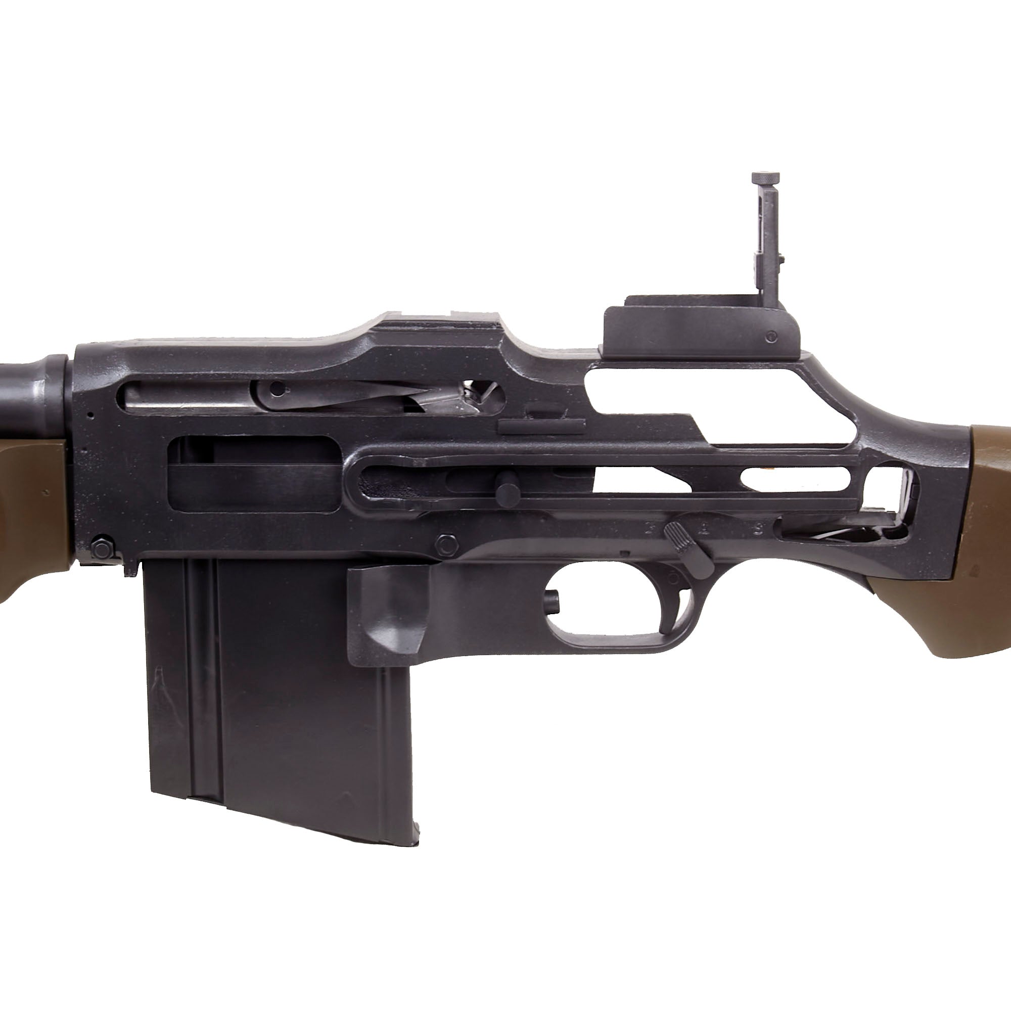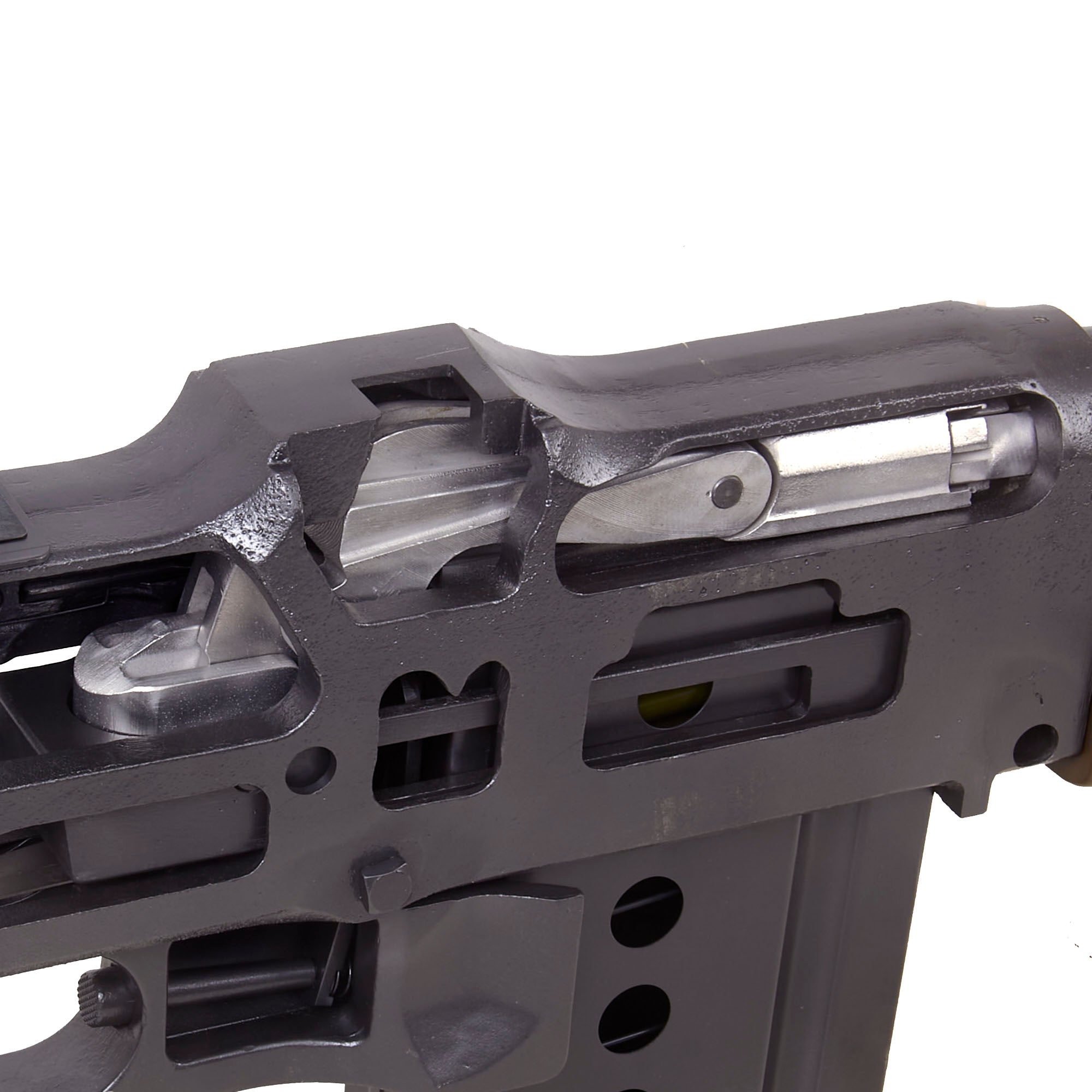 Original Item: Only One Available. This is an incredible World War Two J. H. KEENEY & CO. 1918 BAR cutaway USGI classroom non-functional enlarged training model. Oversized measuring approximately 95" in length and constructed of painted cast metal, this is a classroom demonstrator of the famous Browning M1918 Automatic Rifle for educating soldiers during WW2 on the inner workings and operation of the rifle, including the open bolt operation, magazine, feeding, etc.