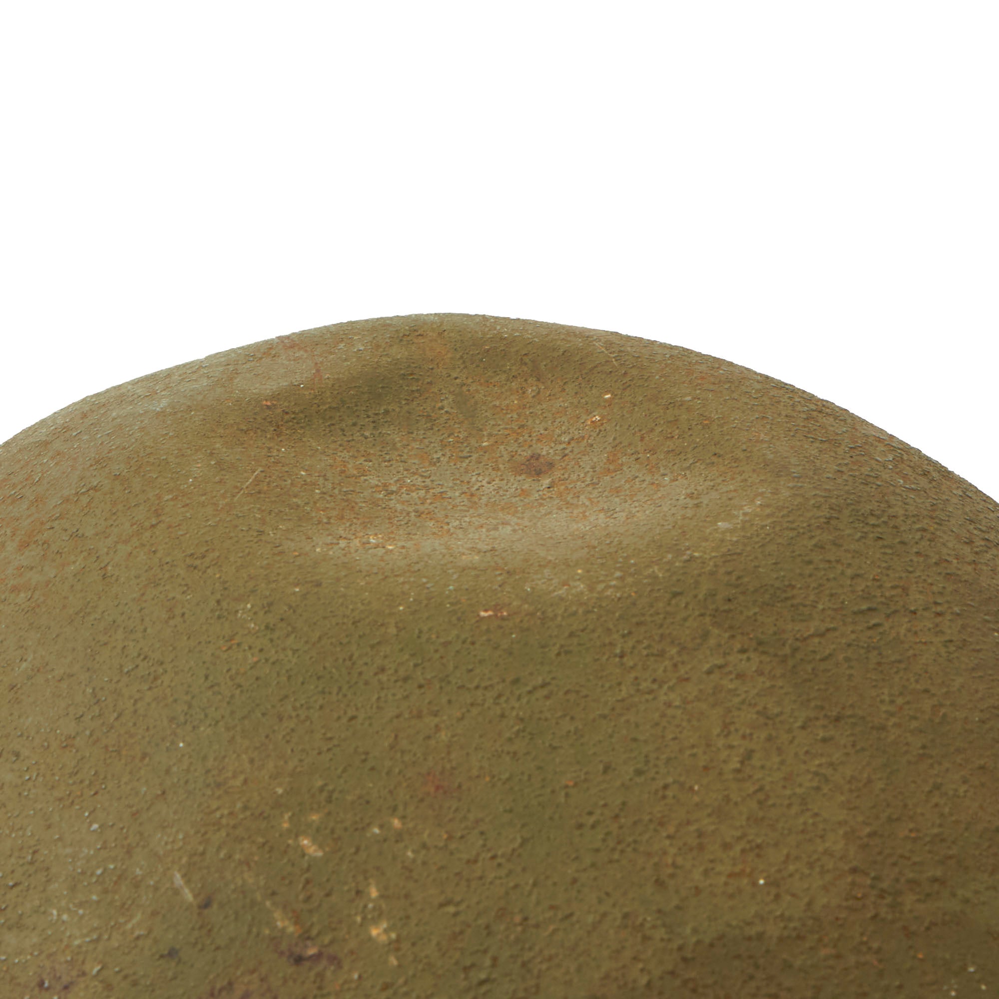 Original Item: Only One Available. This is a very nice example of a genuine early WWII Issue U.S. Army M1 Helmet. The U.S. WWII M-1 helmet was only produced from 1941 to 1945. The first production batch resulted with over 323,510 M-1 helmets before the start of the American involvement in the war. The fixed bales and front seam paired with exterior “ripples”, this is a strong indicator of early war produced helmets. There is rippling but light stress cracks have formed. The shell is heat lot stamped with 208A indicating roughly June 1942 manufacture. The shell has a large dent at the dome of the helmet as shown.
