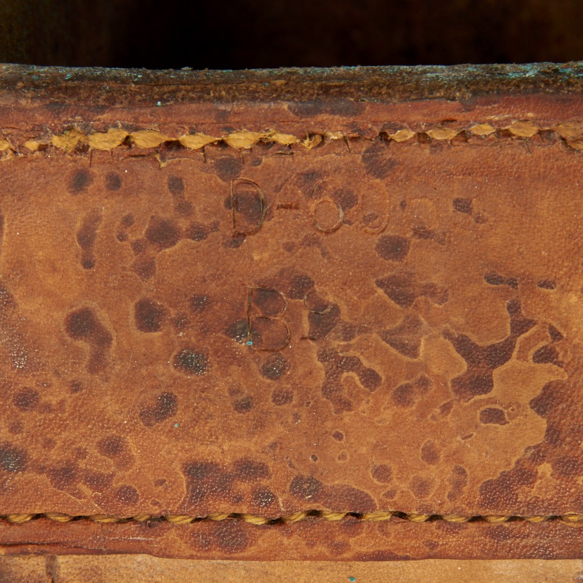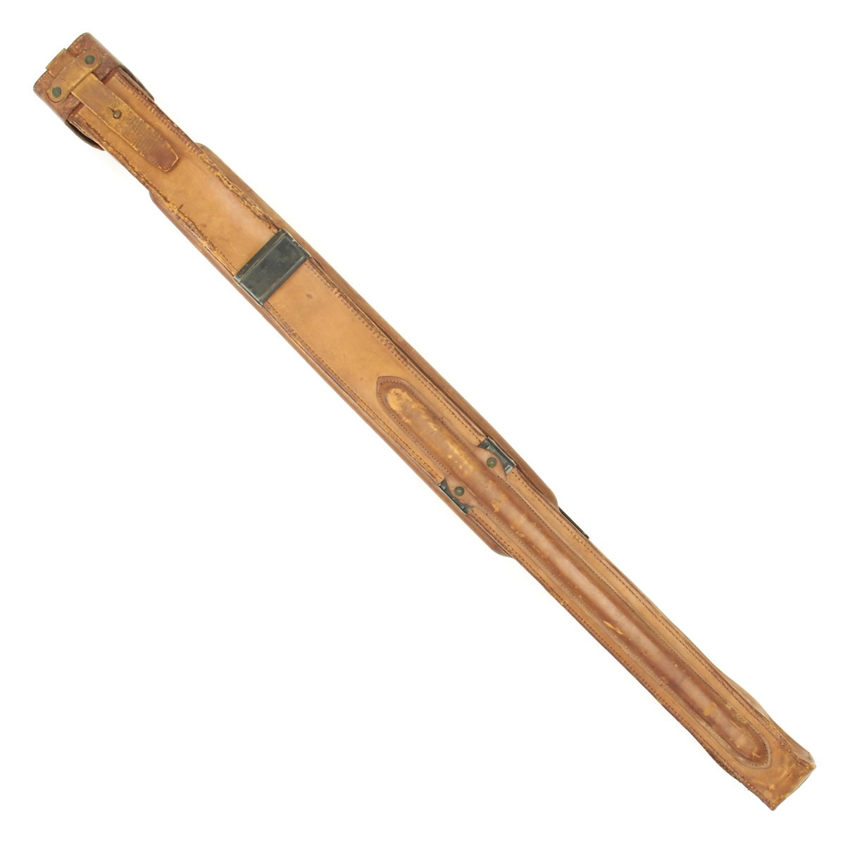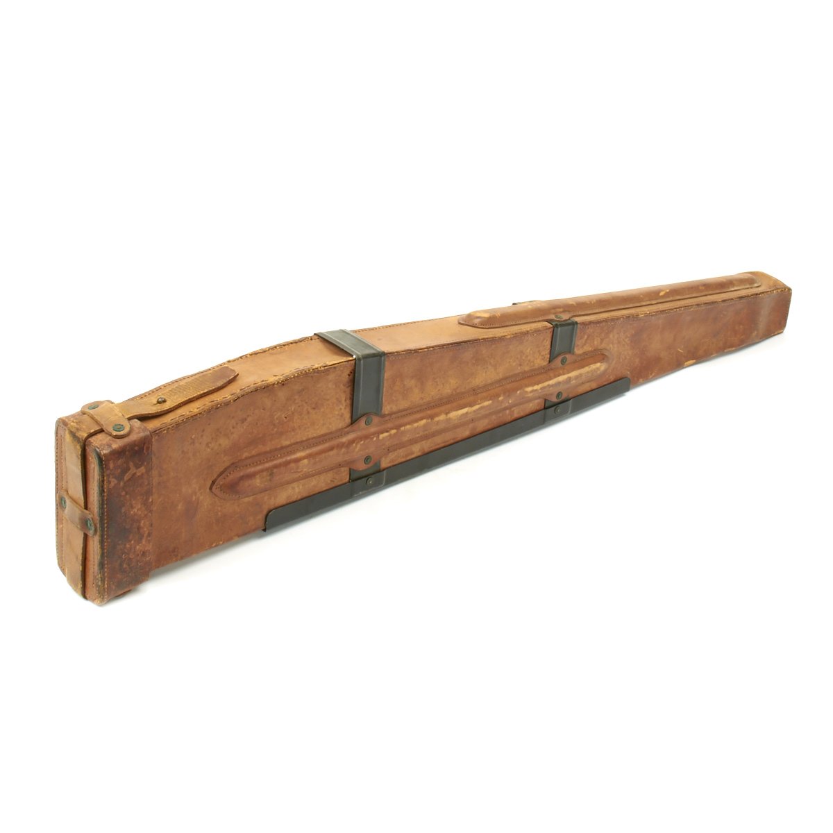 Original Item: Only one available. Dated 1943, this is a very rare original BAR WWII item. Top quality Leather hard case expressly constructed for the legendary Browning Automatic Rifle complete with steel strengtheners and belt hinged end cover. Marked D-6065 Boyt 43 under the end cover, though the markings are hard to see.