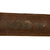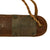 This original M6 leather scabbard is in very good shape, and still clearly marked U.S. M6 / L & C / 1943 just under the stapled throat. This indicates manufacture in 1942 by Lyon & Coulson of Buffalo, N.Y, one of the rarer makes from the six that produced the scabbard. The scabbard leather is a nice aged brown, with minimal cracking and staining. All of the rivets and staple pins holding the scabbard body together are still intact, as is most of the stitching around the edge. The only issued we can see is a shallow cut or crack on the front just below the middle staple.