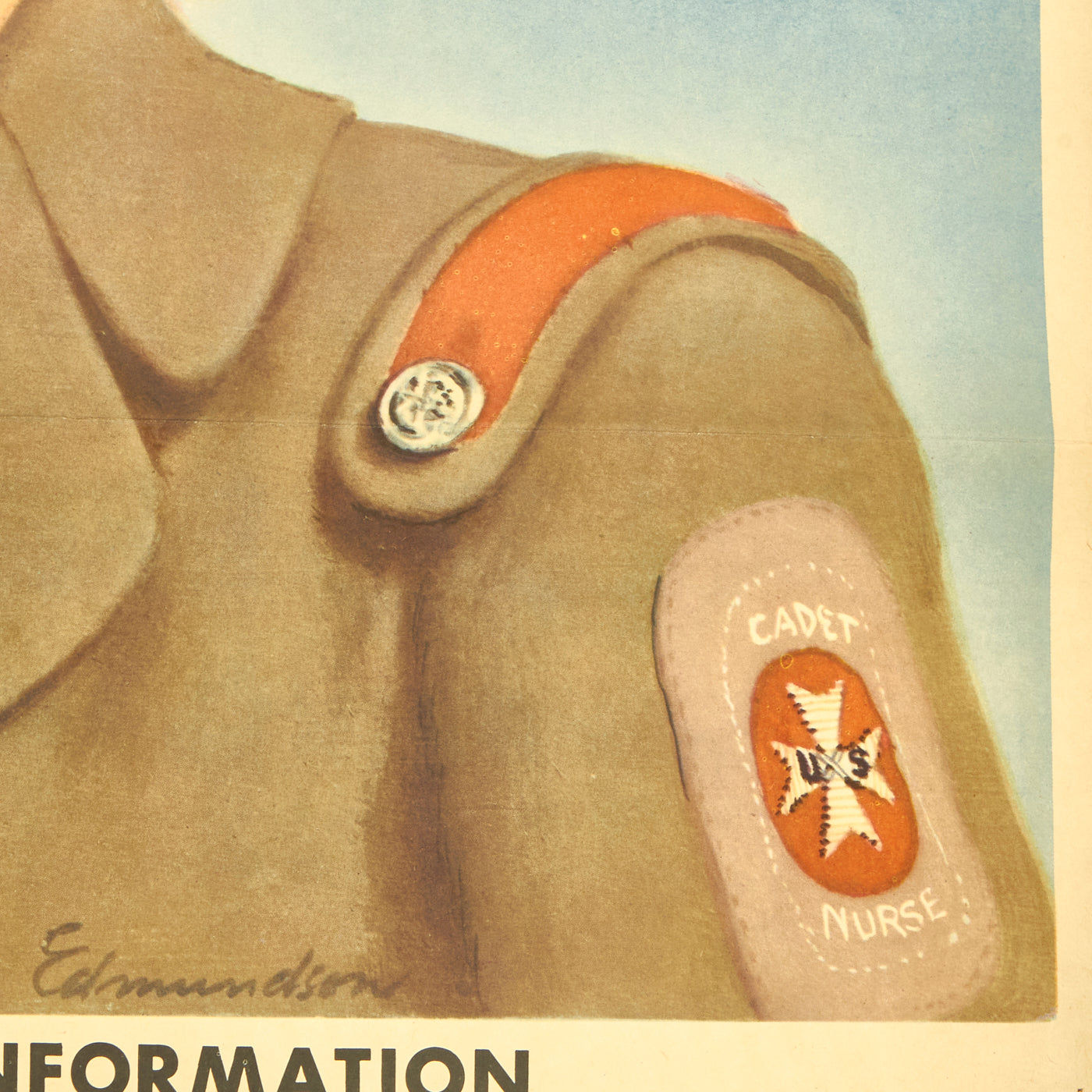 Poster features an image of a cadet nurse in dress military uniform and is dated 1943.