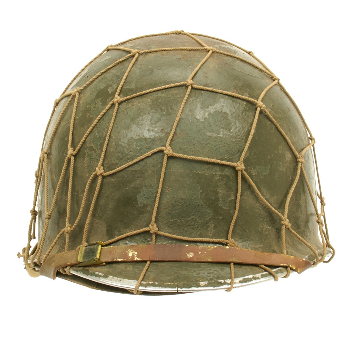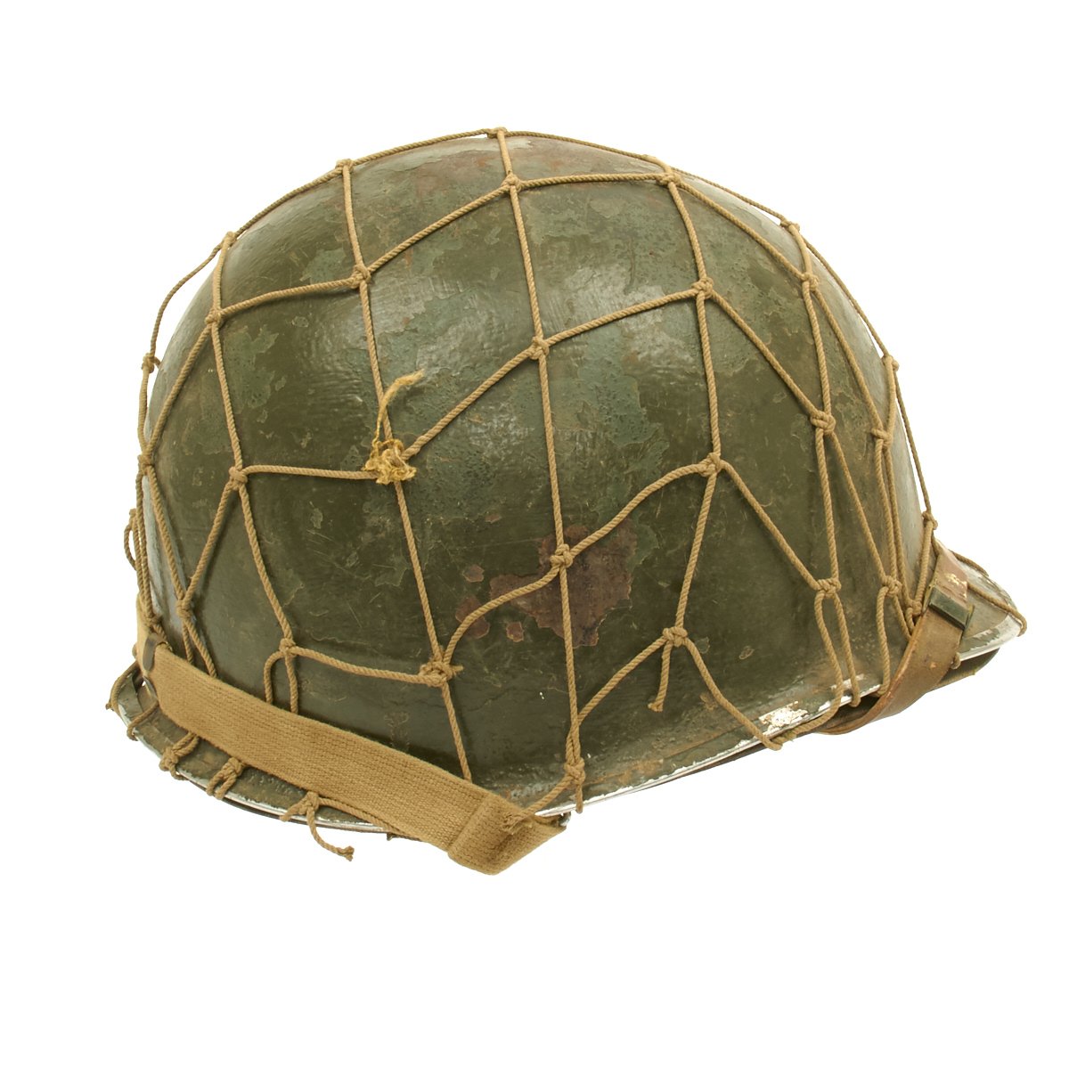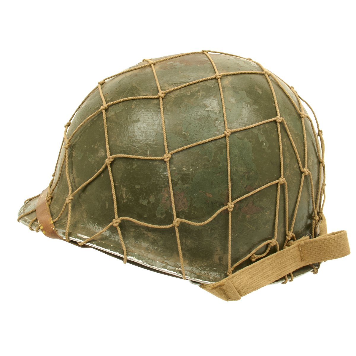Original Item: Only One Available. The U.S. WWII M-1 helmet was only produced from 1941 to 1945. The first production batch resulted with over 323,510 M-1 helmets before the start of the American involvement in the war. This helmet is stamped 693B which indicates the approximate manufacture date of October 1943.