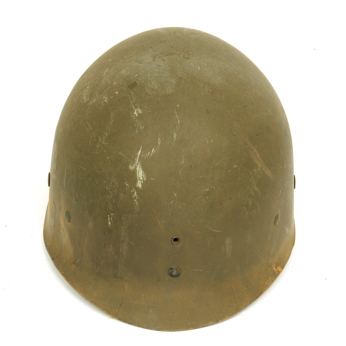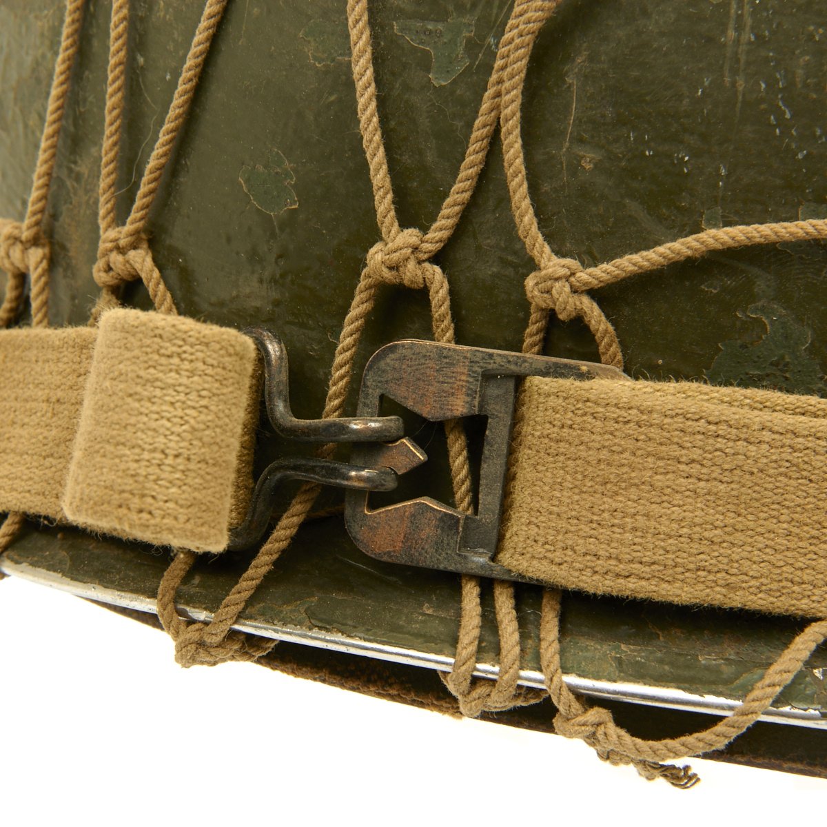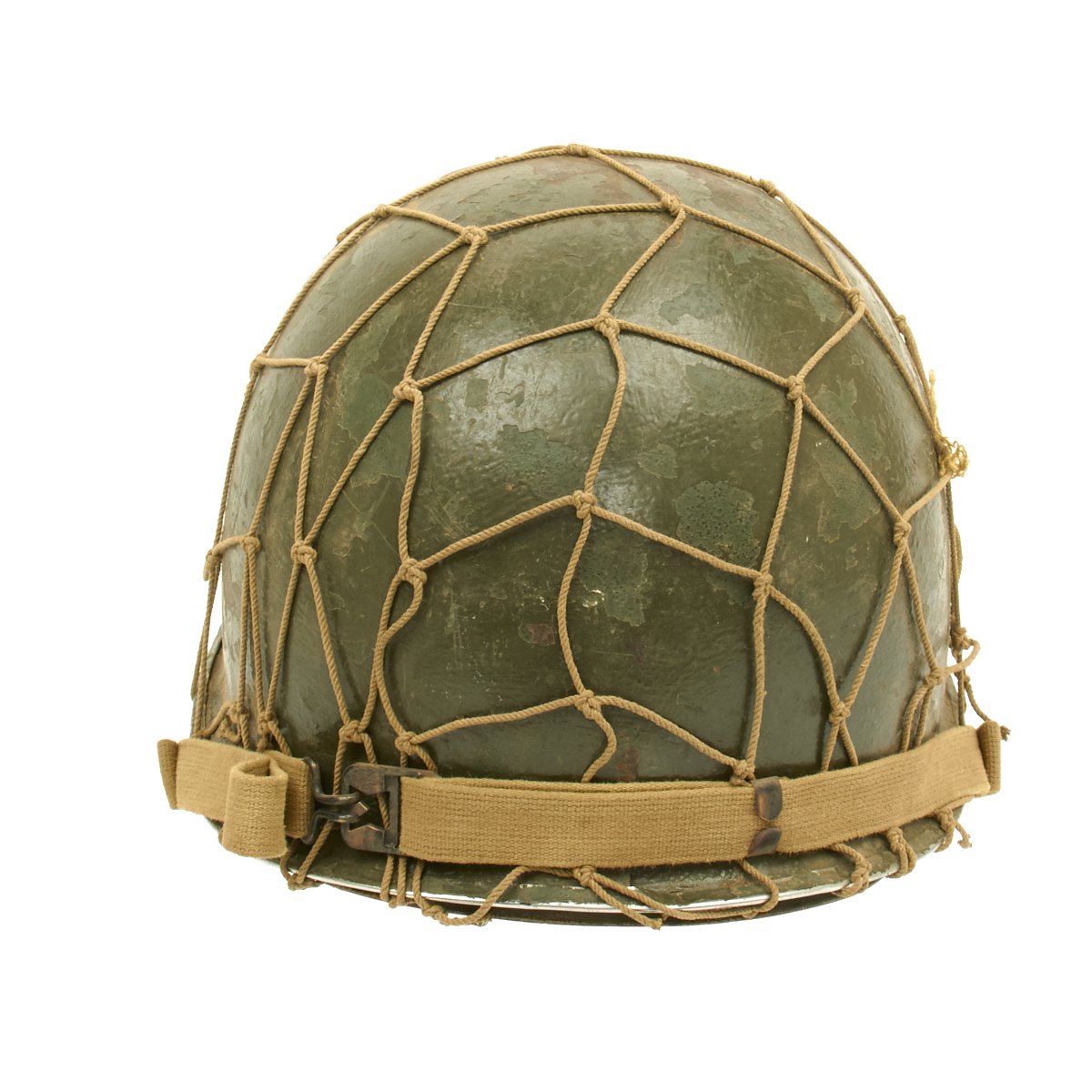 Original Item: Only One Available. The U.S. WWII M-1 helmet was only produced from 1941 to 1945. The first production batch resulted with over 323,510 M-1 helmets before the start of the American involvement in the war. This helmet is stamped 693B which indicates the approximate manufacture date of October 1943.