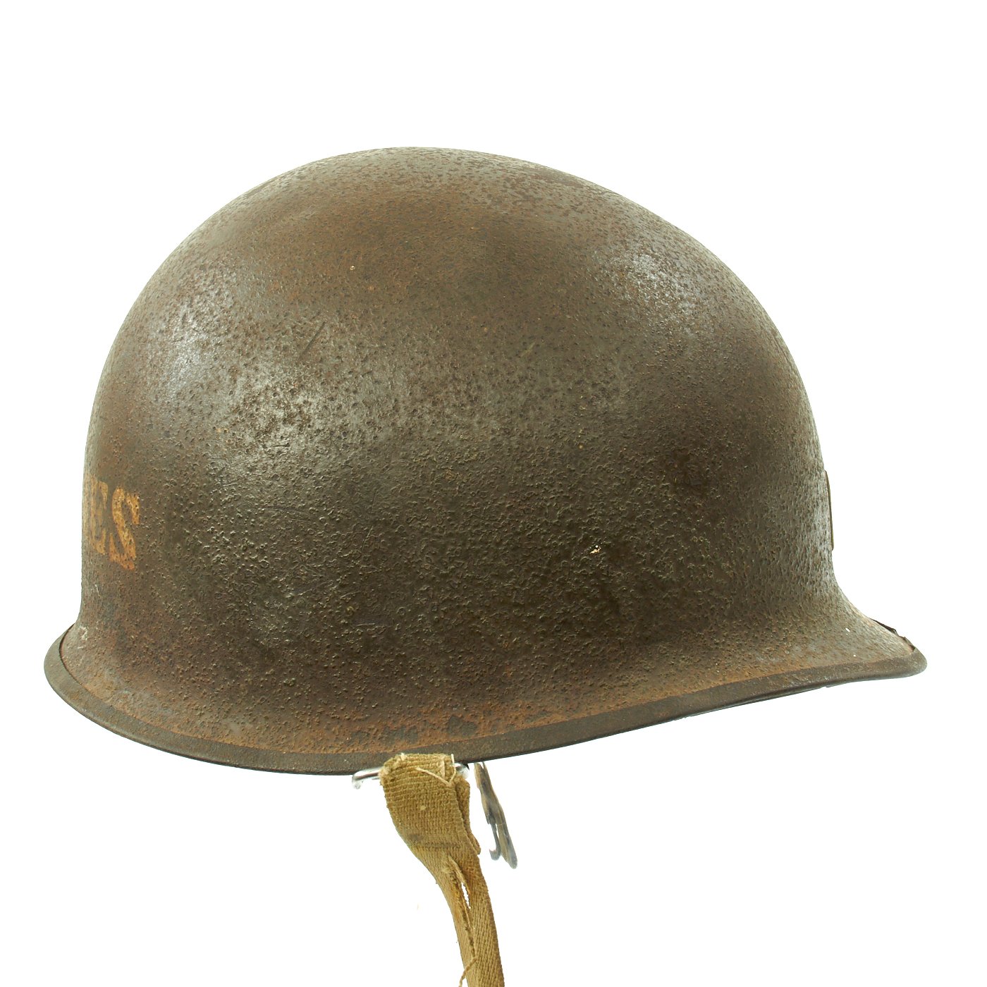 This helmet is a great example and still retains original WW2 parts and the shell has some of the original "corked" grain paint.