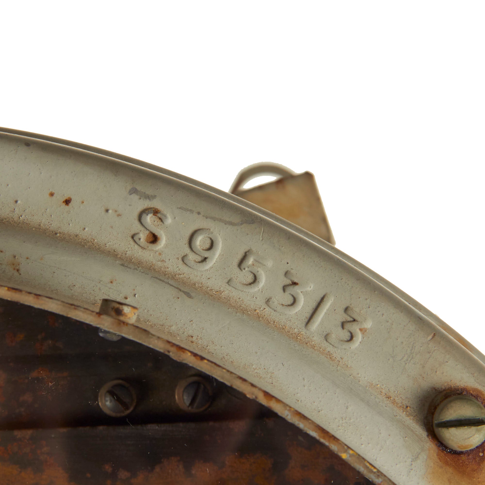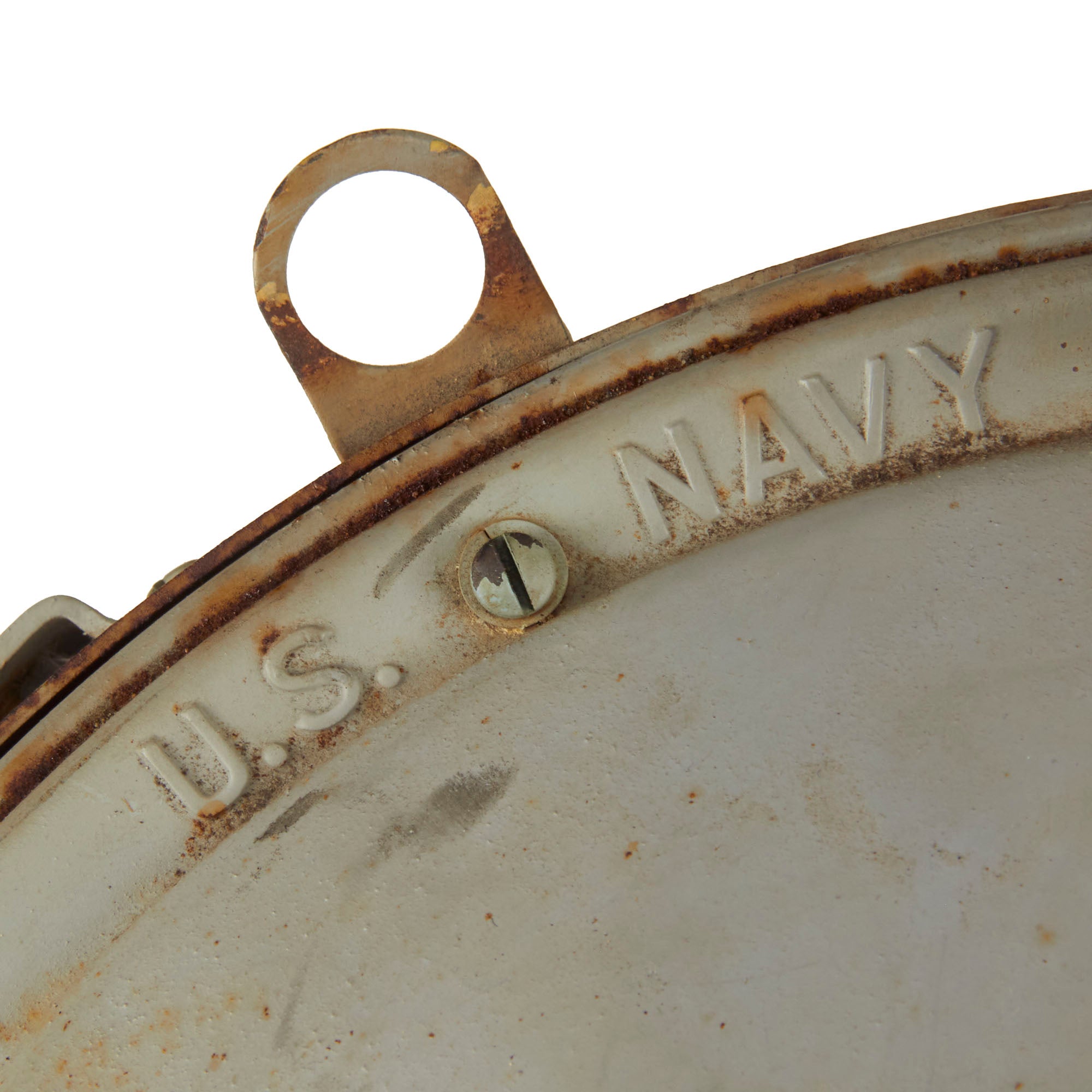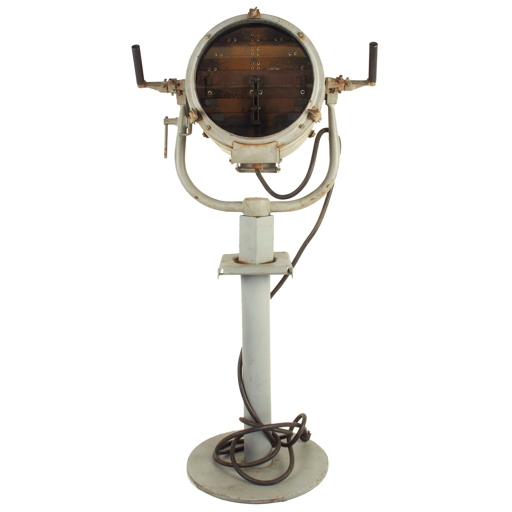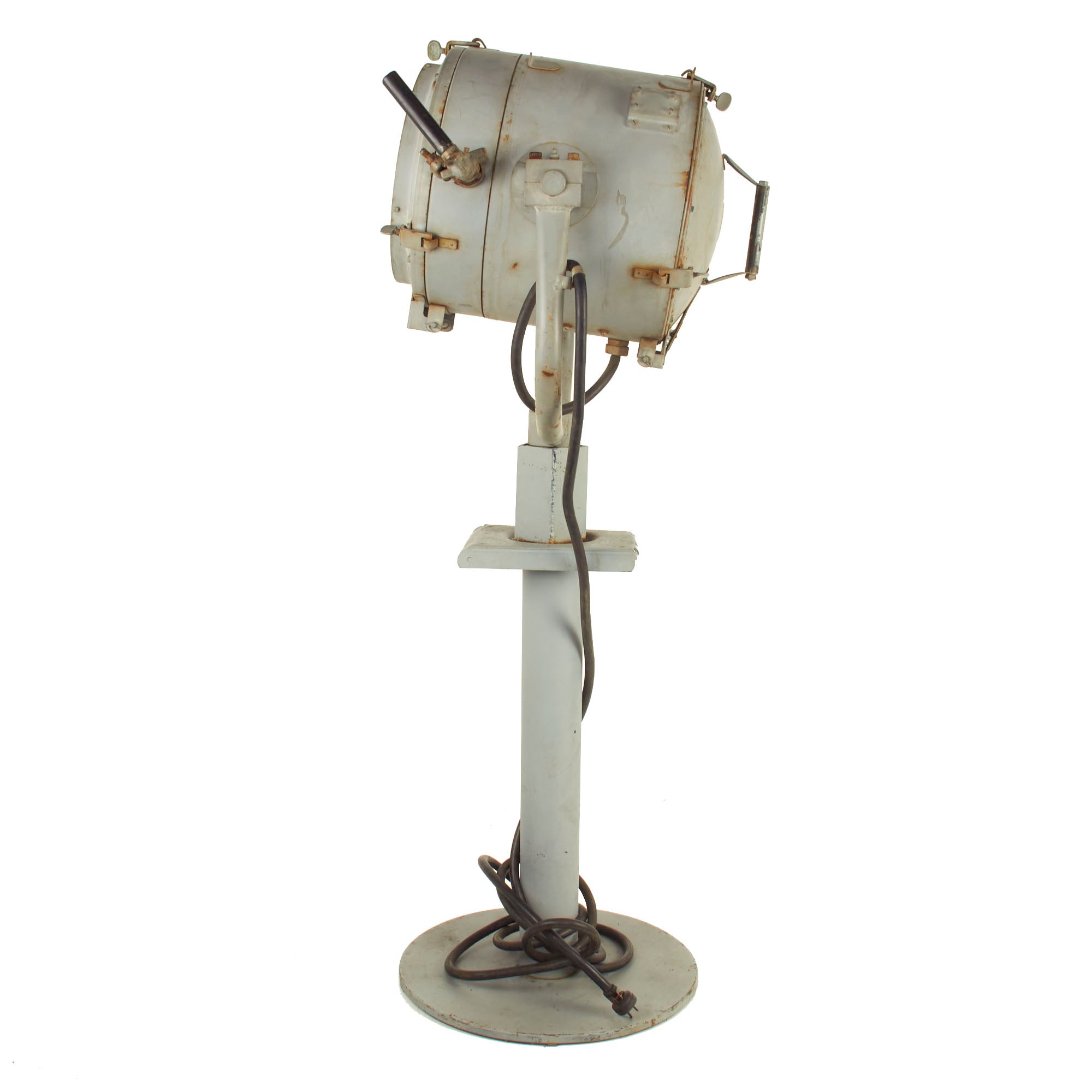 Original Item: Only One Available. This is a fantastic condition of a 1945 dated 12” US Navy Ship’s Signal Search Light with a very nice functional Morse code shutter assembly. Examples are extremely rare to come by, especially one with an original ship pedestal mount.