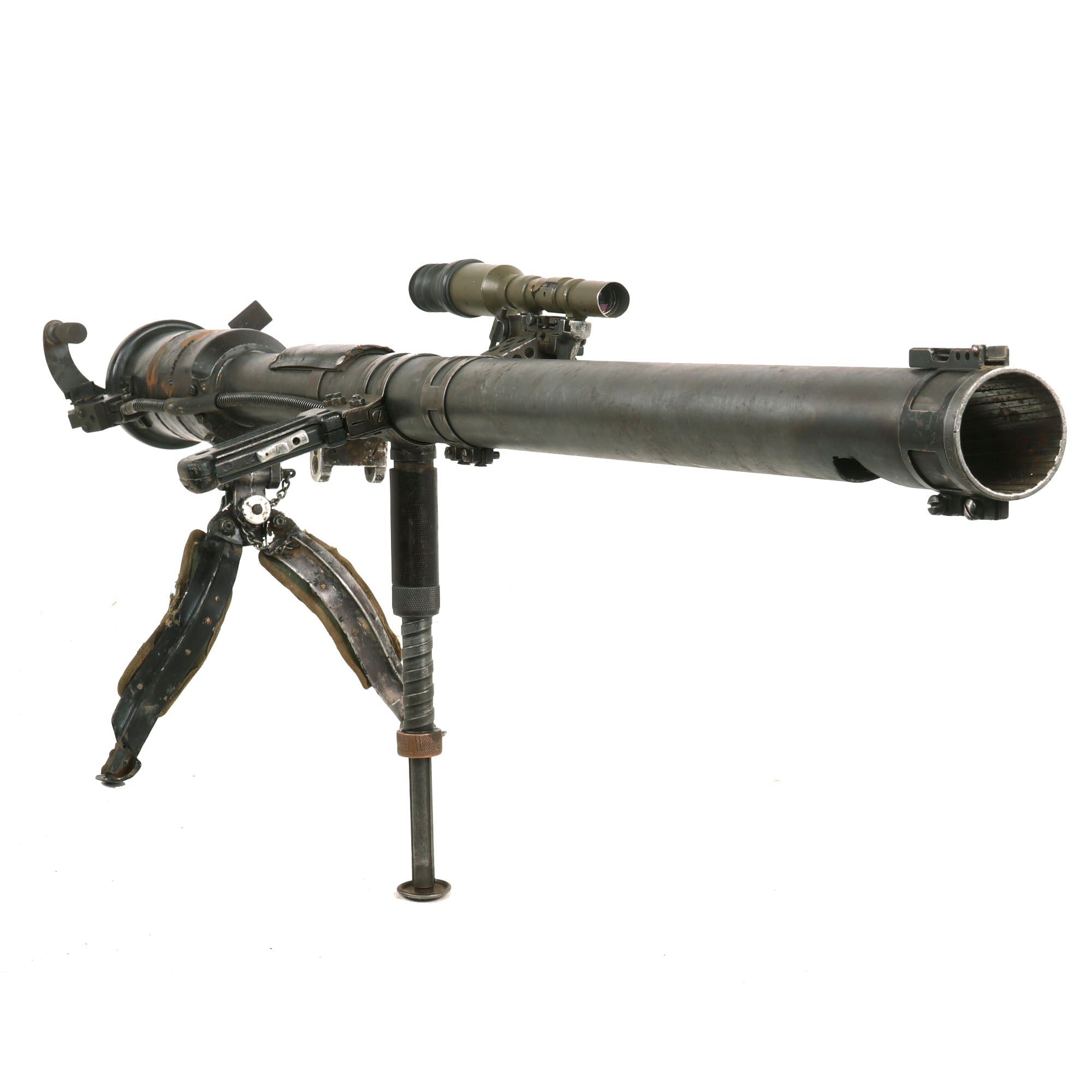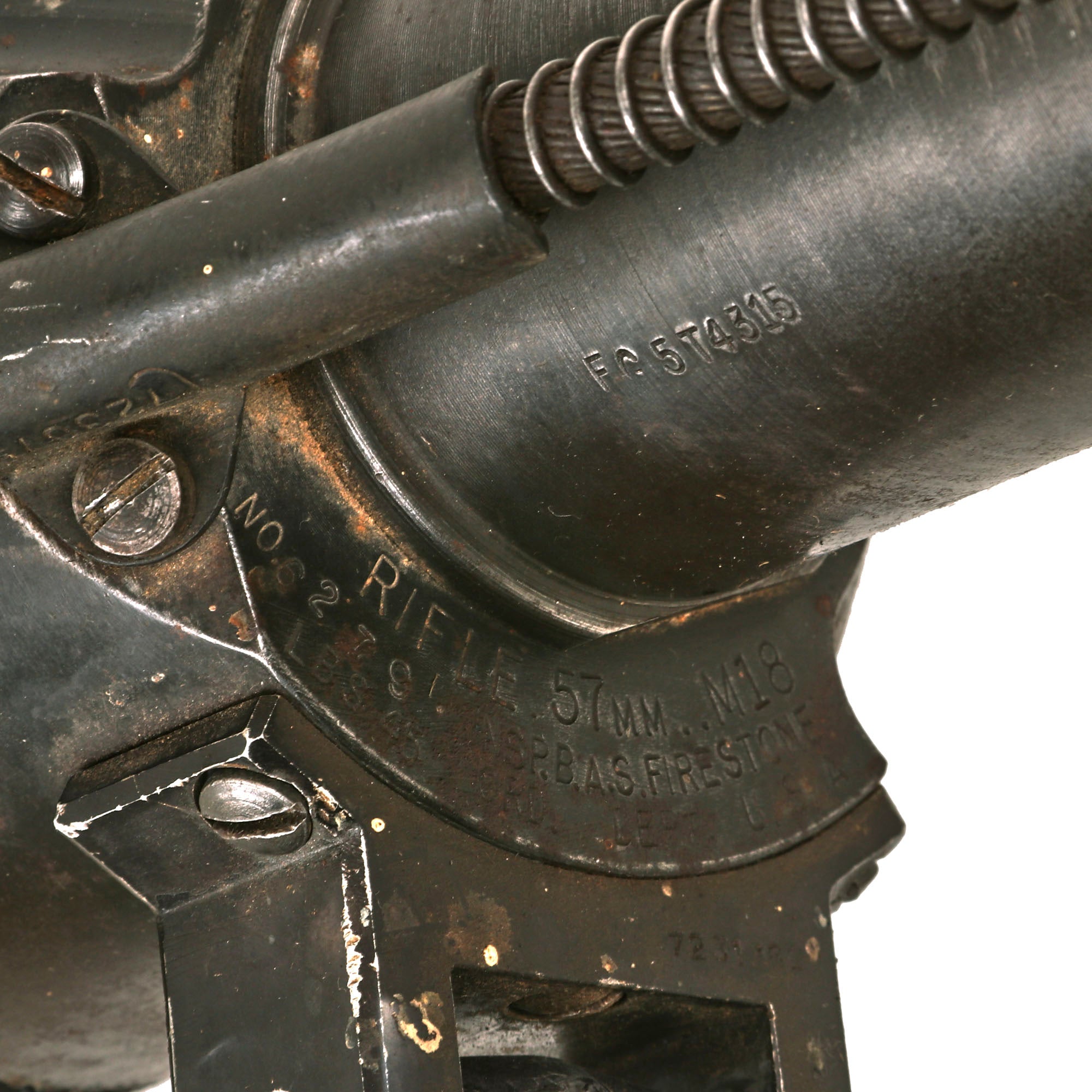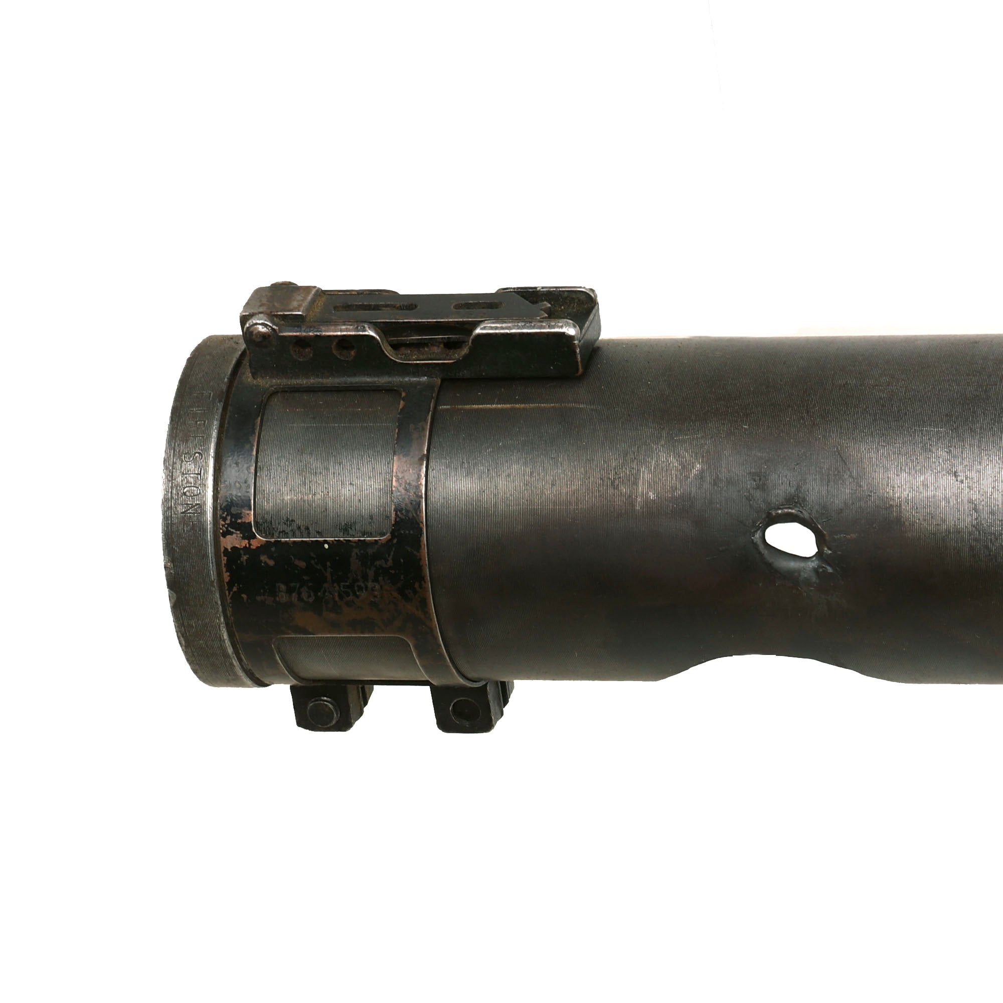 Original Item: Only One Available. This is an incredible find, only the third example we have ever offered, and possibly the best! A totally authentic World War Two M18 Recoilless Rifle, rendered totally inert (de-militarized) in compliance with BATF specifications. It has had the firing mechanism deactivated, a bore width hole cut through the bore, and steel cross pin welded across the breech to prevent loading. The housing at the rear was flame cut into three sections, and then partly welded back together for display. Not Available for Export.