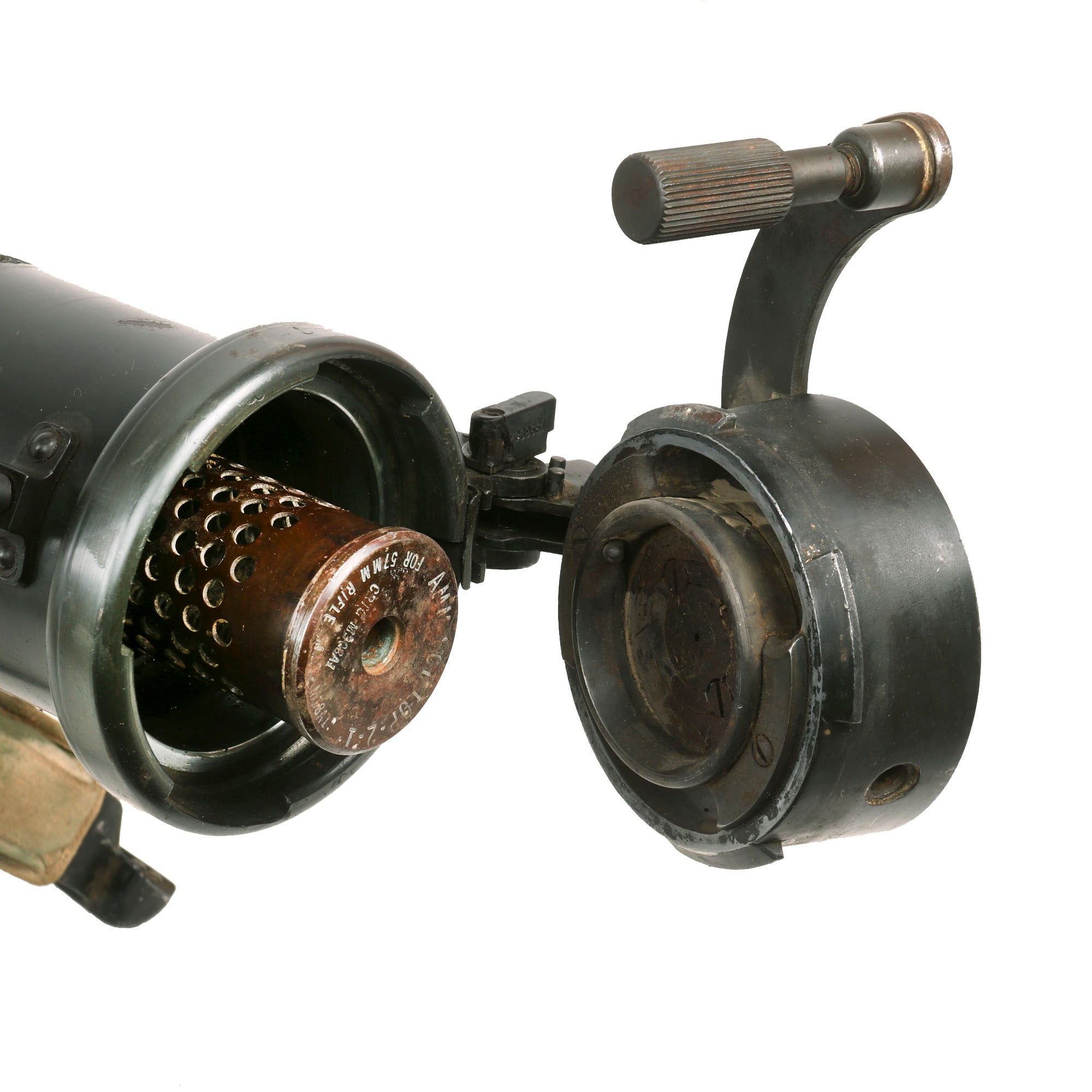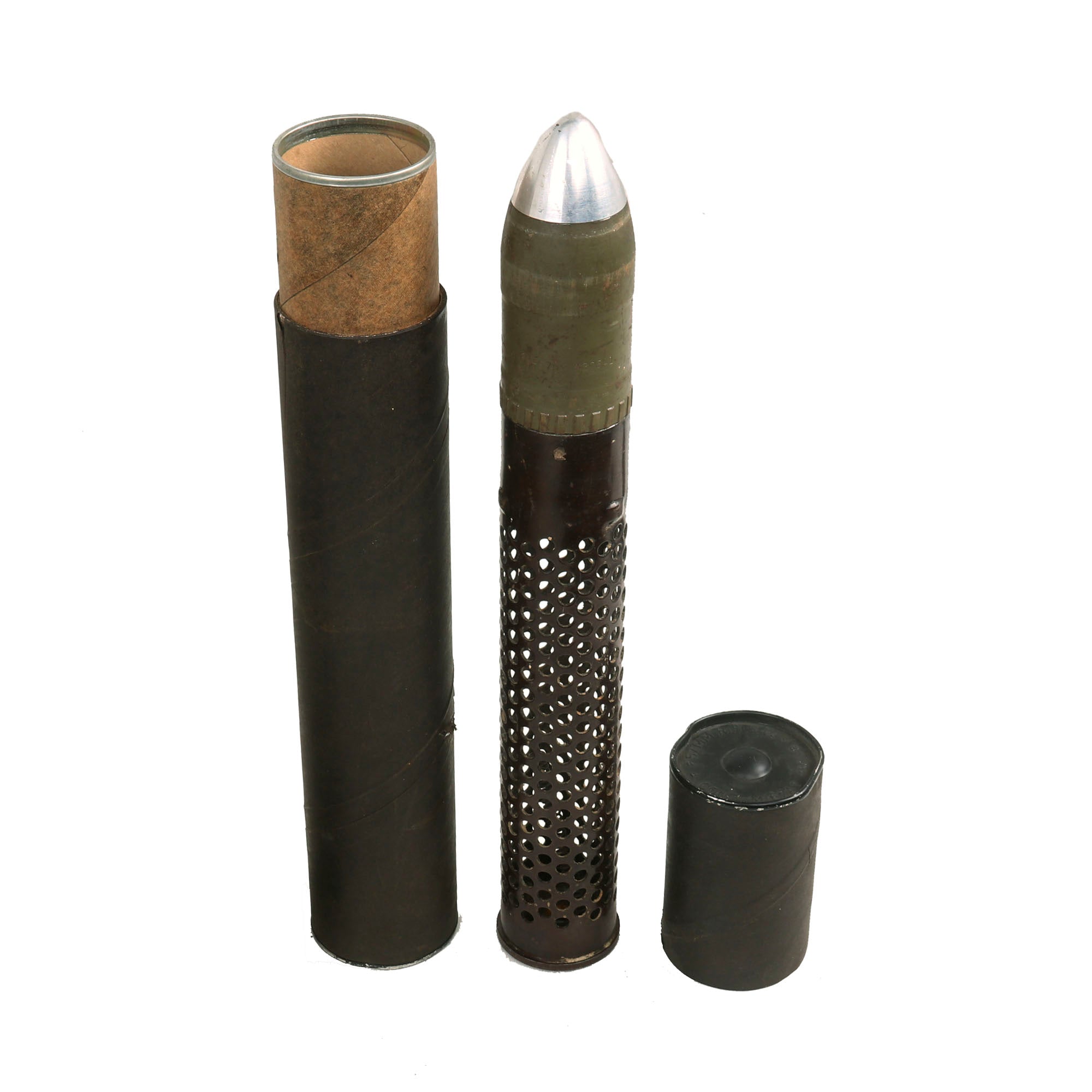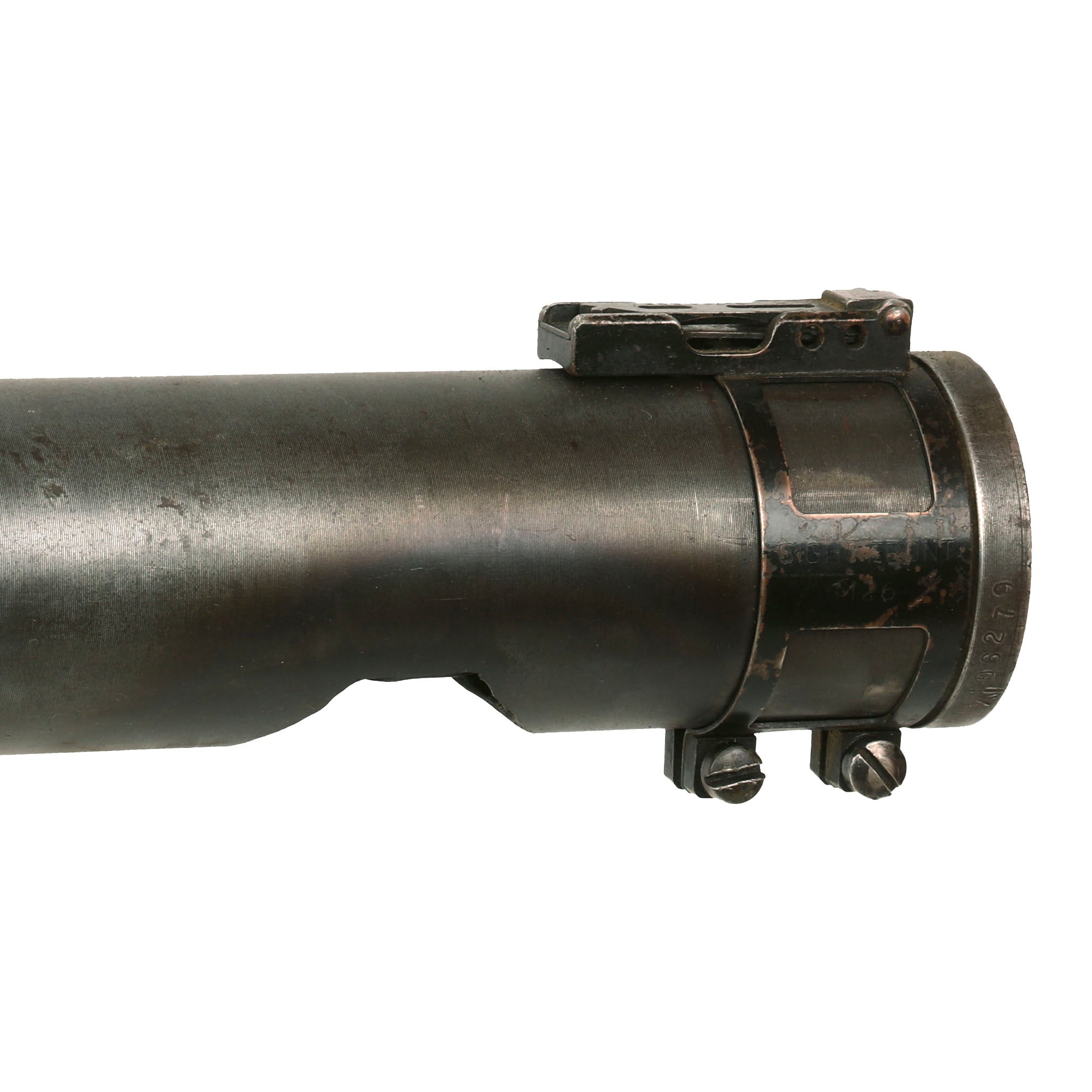 Original Item: Only One Available. This is an incredible find, only the third example we have ever offered, and possibly the best! A totally authentic World War Two M18 Recoilless Rifle, rendered totally inert (de-militarized) in compliance with BATF specifications. It has had the firing mechanism deactivated, a bore width hole cut through the bore, and steel cross pin welded across the breech to prevent loading. The housing at the rear was flame cut into three sections, and then partly welded back together for display. Not Available for Export.